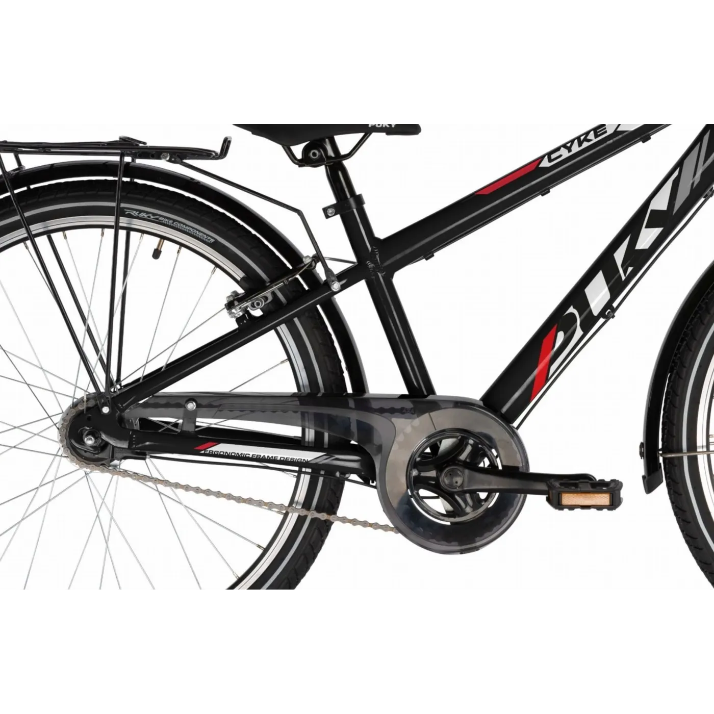 PUKY Cyke został świetnie zaprojektowany pod kątem ergonomii i ma doskonałe właściwości jezdne do codziennego użytku. Rama wykonana jest z aluminium i pokryta odporną na uderzenia powłoką proszkową. Mechanizm korbowy, sztyca i obręcze są również wykonane z aluminium i przyczyniają się do zmniejszenia masy. Podstawowe wyposażenie obejmuje, oprócz antypoślizgowych pedałów, reflektor i tylne światło LED, które są zasilane przez dynamo w piaście. 3-biegowy system przerzutek Shimano Nexus jest bardzo łatwy w użyciu. Bagażnik rowerka jest stabilny i pozwala na niewielki dodatkowy załadunek.