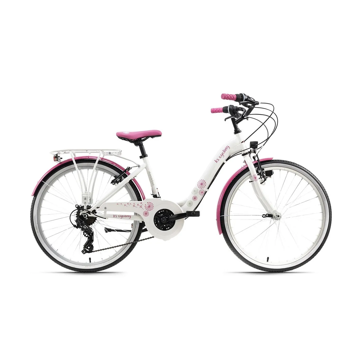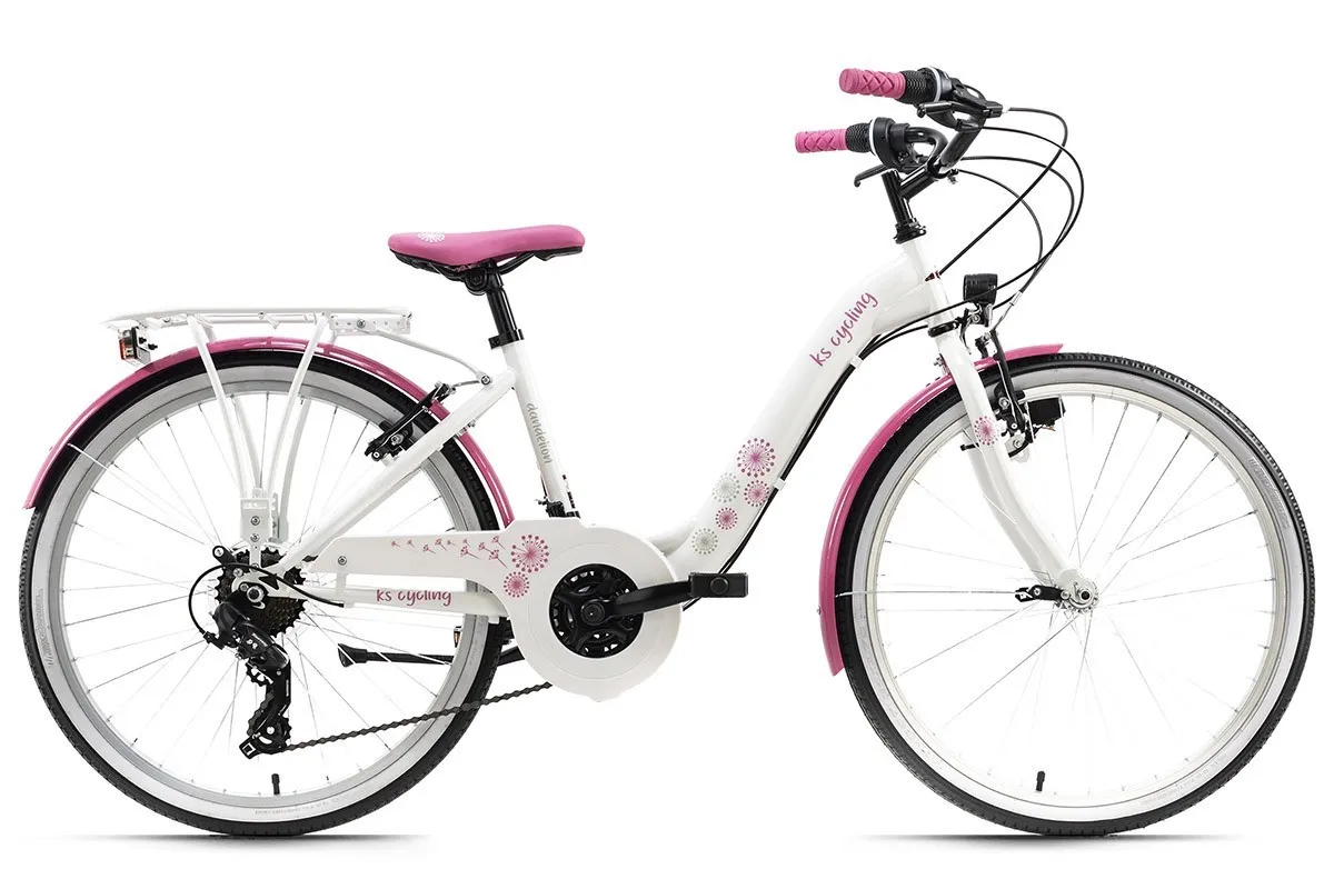 Dandelion firmy KS-Cycling to wyjątkowy rowerek na 24 calowych kołach, utrzymany w biało-różowej kolorystyce.