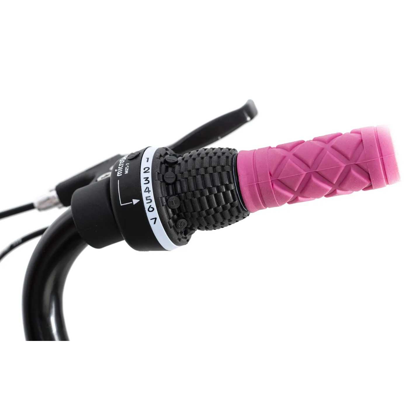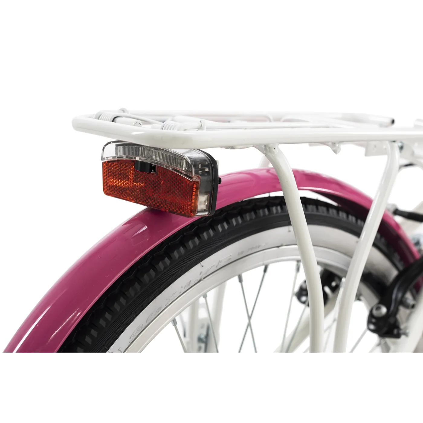 Dzięki 21-biegowej przerzutce, łatwej w użyciu manetce obrotowej i dwóm hamulcom V-brake, Twoje dziecko z łatwością przyzwyczai się do większych rowerów. Praktyczny bagażnik, oświetlenie i osłona łańcucha sprawiają, że rower jeszcze bardziej przypomina prawdziwy rower dla dorosłych.