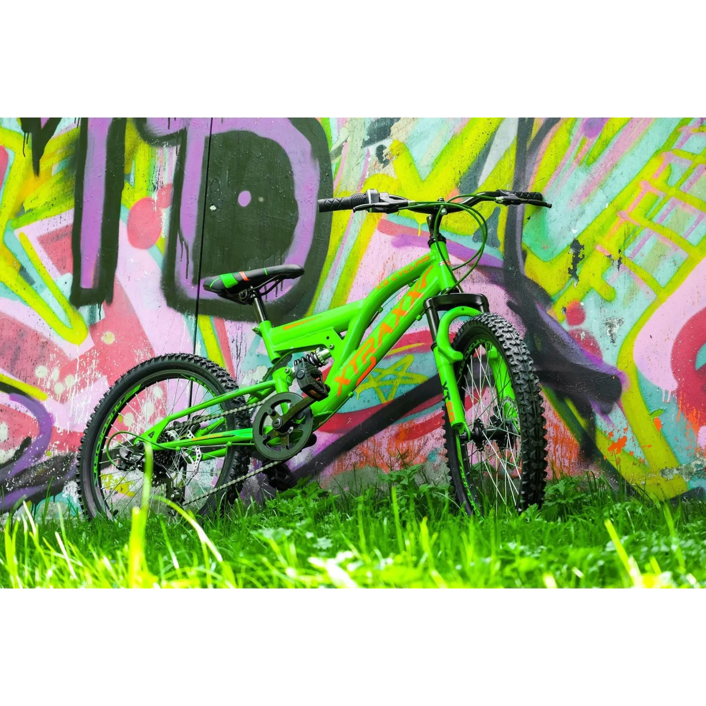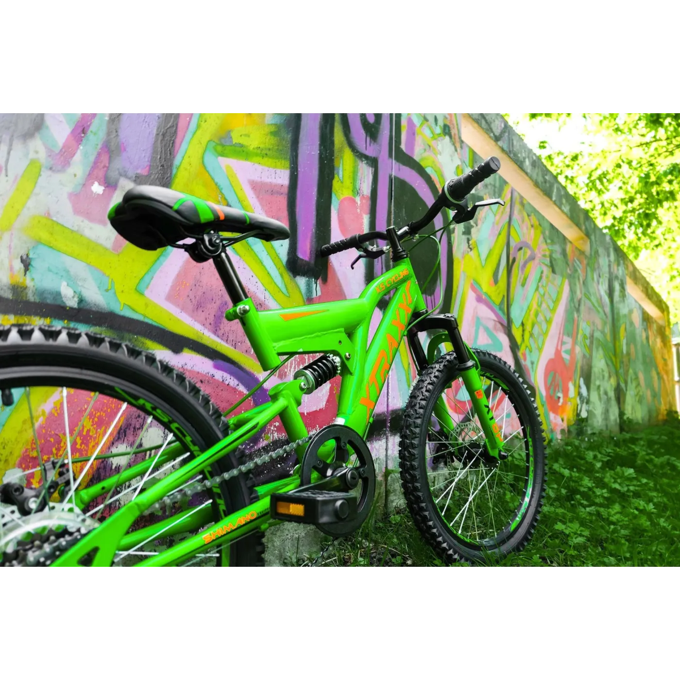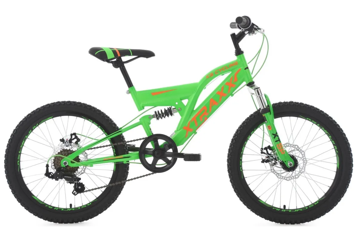 20-calowy rower dziecięcy Xtraxx z pełnym zawieszeniem firmy KS Cycling to bez wątpienia doskonały wybór dla najmłodszych! Amortyzowany widelec i amortyzowana rama w połączeniu z oponami do rowerów górskich z głębokim bieżnikiem to nie wszystko czym może się poszczycić. Mechaniczne hamulce tarczowe z przodu i z tyłu zapewniają wymagane bezpieczeństwo. Model jest również wyposażony w 7-biegową przerzutkę Shimano. Dzięki Xtraxx mali rowerzyści górscy są bezpieczni i jednocześnie stylowi!