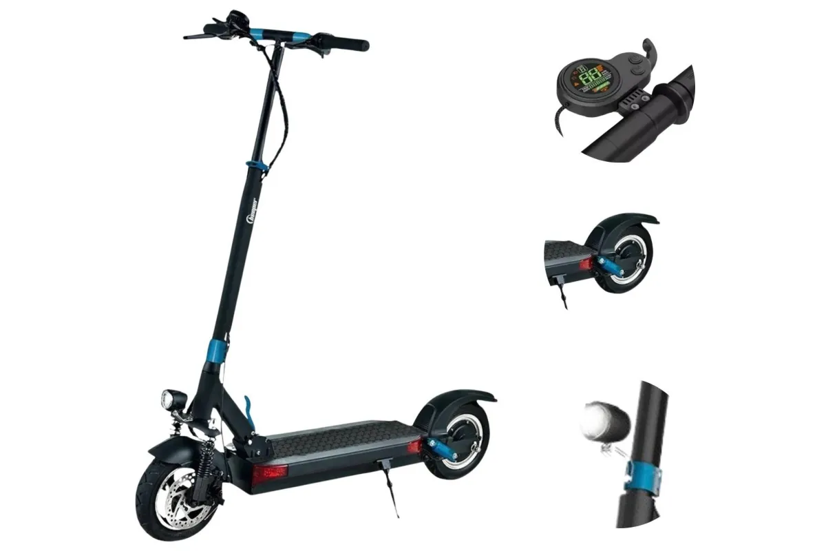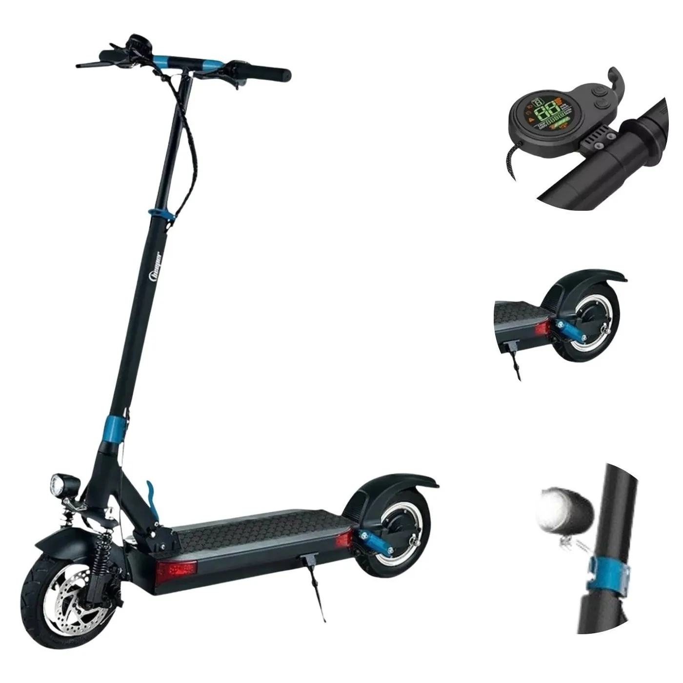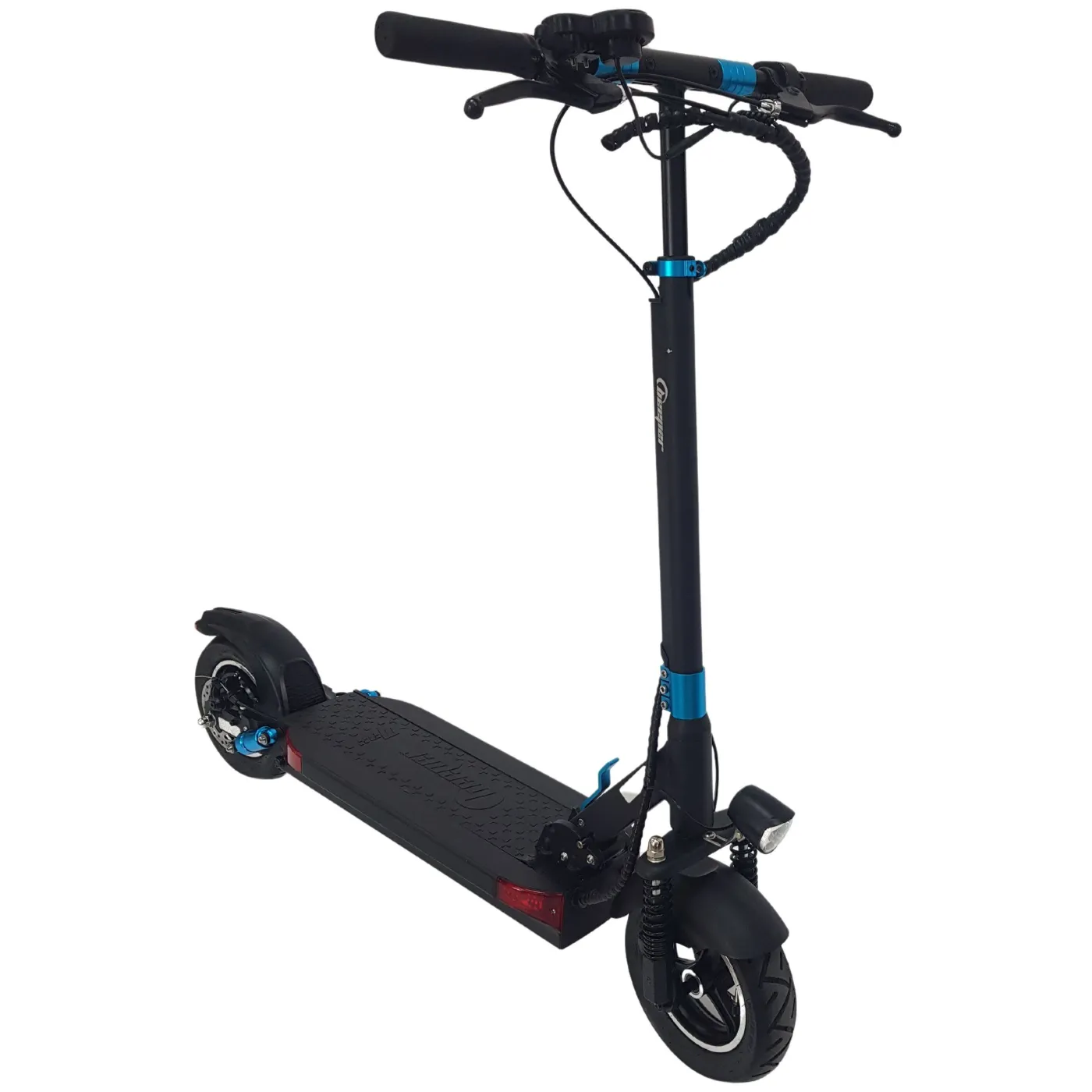 🛴 Elektryczna hulajnoga Beeper MAX jest doskonałym wyborem zarówno na krótkie, jak i długie wycieczki. Dzięki podwójnemu zawieszeniu z przodu oraz 10-calowymi pompowanymi kołami zapewnia ona wygodę podczas jazdy, nawet po nierównym terenie. Wyposażona w bezszczotkowy silnik o mocy 500 W oraz akumulator 48 V 8 Ah, gwarantuje optymalną wydajność nawet przy intensywnym użytkowaniu.