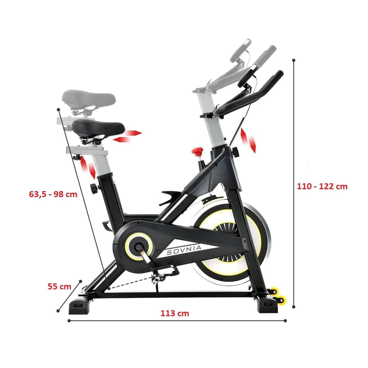 Wyposażony w koło zamachowe o wadze 35 kg, pogrubioną trójkątną stalową ramę i cichy system napędzany pasem, rower stacjonarny SOVNIA zwiększa stabilność i stabilność podczas jazdy zarówno w pozycji siedzącej, jak i stojącej. Zrównoważone koło zamachowe zapewnia cichą i płynną jazdę. Regulowana wysokość siedziska, wysokość kierownicy i opór pozwala dostosować trening do odpowiedniej dla siebie pozycji. Monitor LCD wyraźnie pokazuje odległość, prędkość, kalorie, czas. Uchwyt na telefon pozwala na oglądanie filmów lub słuchanie muzyki podczas całego treningu.