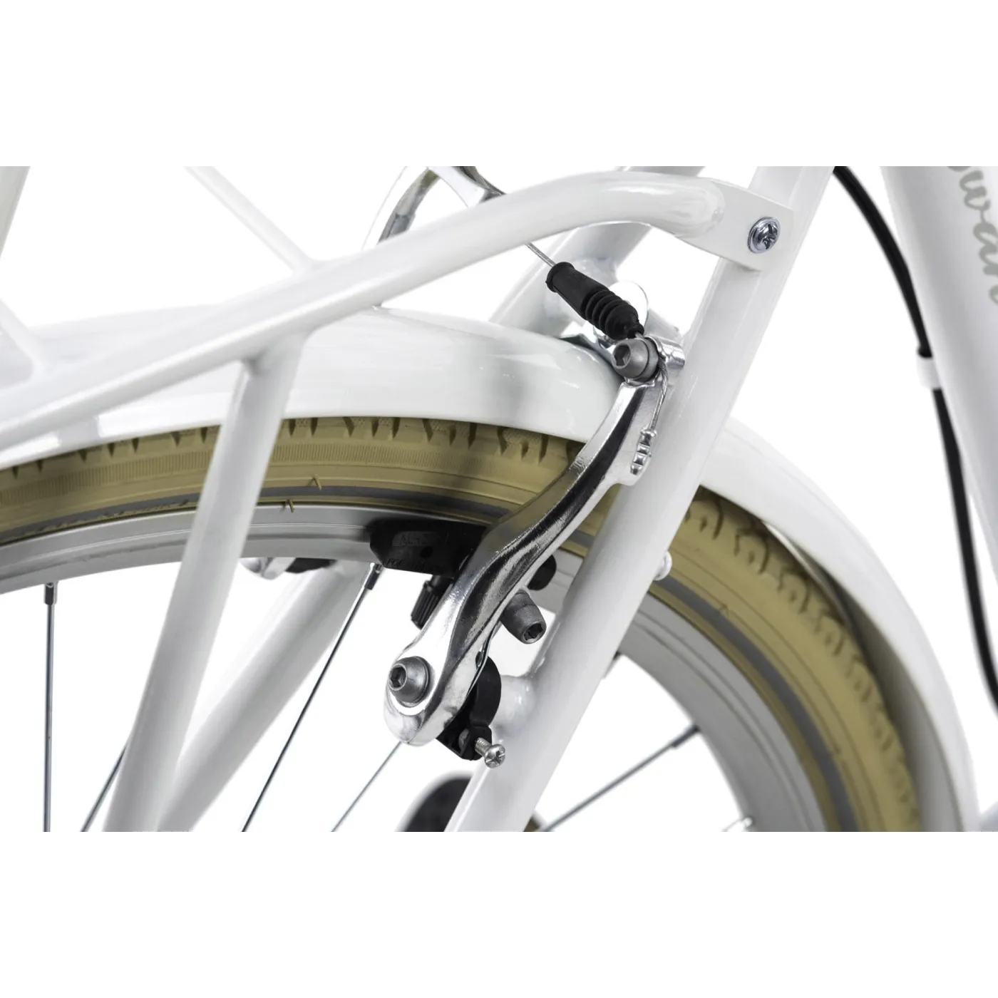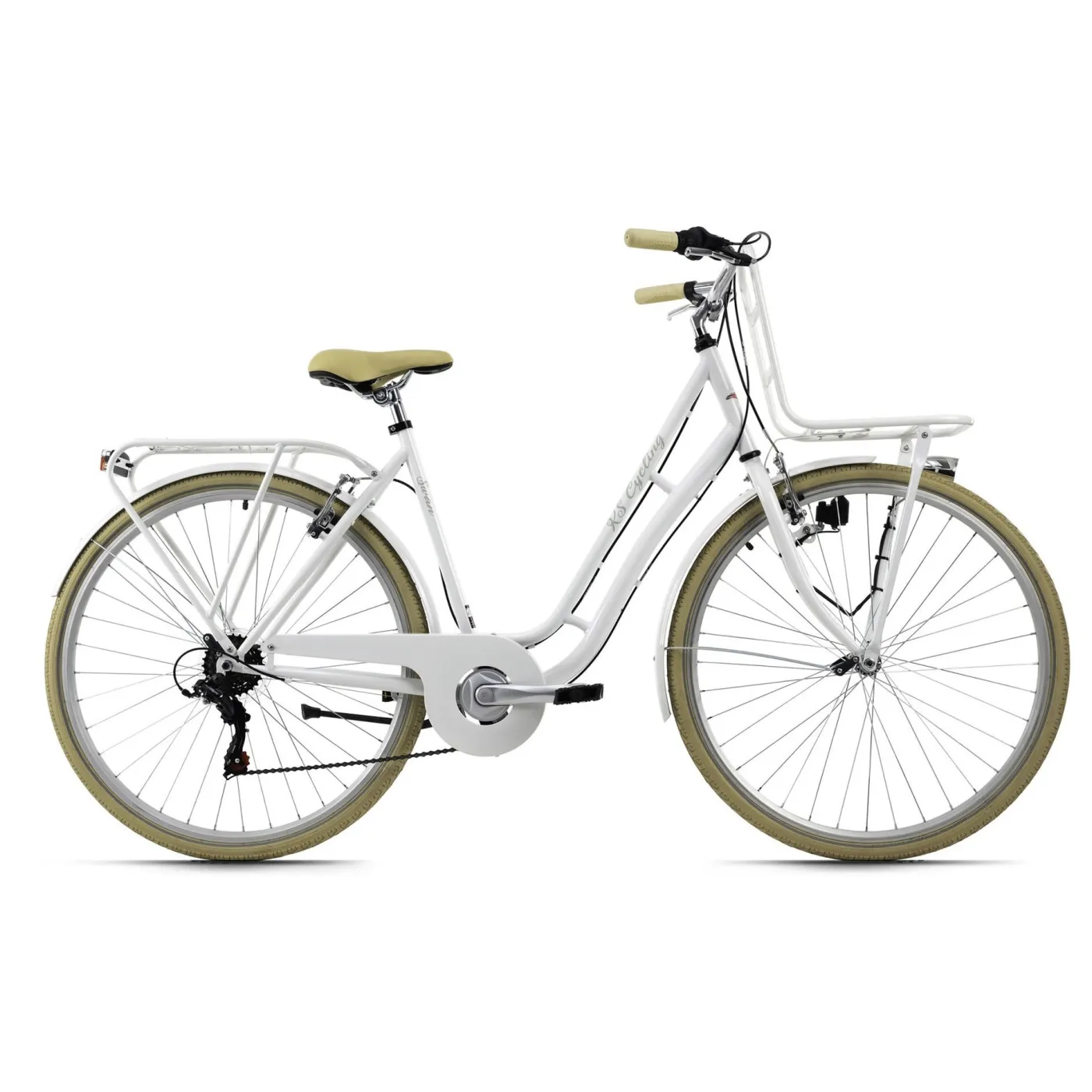 KS Cycling 28" Swan to rower miejski, który pozwoli Ci odkryć nieznane! Model ten nie tylko przyciąga wzrok, ale także przekonuje wyposażeniem. Stabilny bagażnik z przodu pomieści wszystko od zakupów hurtowych po torbę plażową. 6-biegowa przerzutka Shimano gwarantuje swobodną jazdę po mieście i dostosowuje się do Twoich indywidualnych potrzeb. Oświetlenie zasilane dynamem oznacza, że jesteś bezpieczny na drodze, nawet w ciemności.