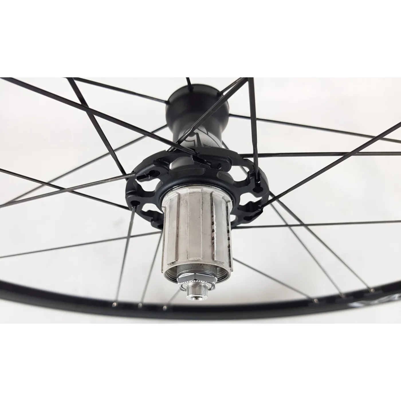Campagnolo Zonda C17 łączy w sobie wytrzymałość, wydajność i bardzo niską wagę. Aluminiowe, frezowane obręcze posiadają zróżnicowany profil. Przedni o wysokości 24 mm daje dobre właściwości aerodynamiczne; tylny wysokości 30 mm zapewnia sztywność niezbędną dla jak najbardziej efektywnego przeniesienia napędu. Zestawienie to daje doskonałe parametry wagowe i wytrzymałościowe.