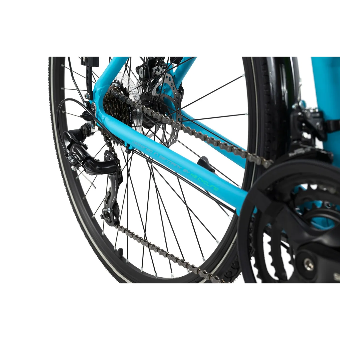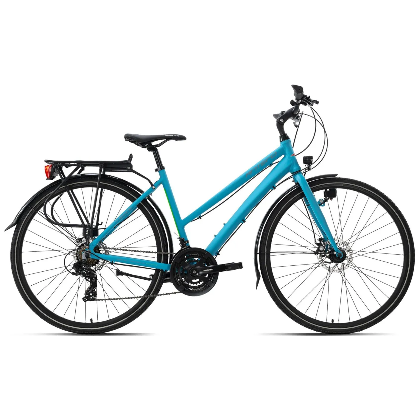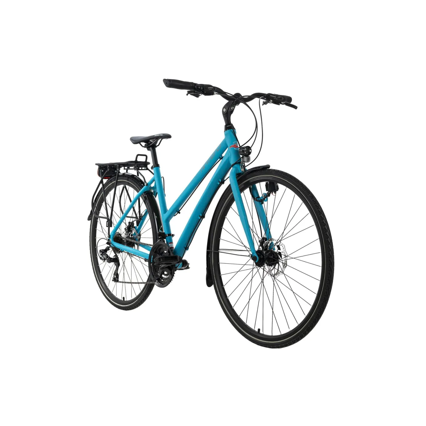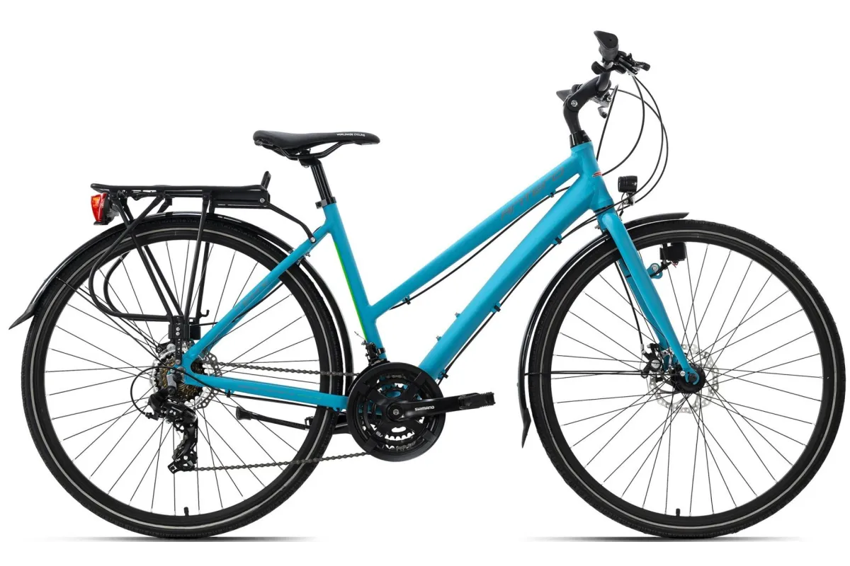 Śmiało odkrywaj świat na rowerze trekkingowym Antero! Rower przyciąga wzrok swoim metaliczno-turkusowym designem i charakteryzuje się przede wszystkim lekką aluminiową ramą oraz łatwą regulacją płaskiej kierownicy turystycznej pod względem wysokości i kąta nachylenia. Ale rower ma nie tylko wiele do zaoferowania wizualnie, wyposażenie techniczne mówi samo za siebie: dzięki 21-biegowej przerzutce Shimano jesteś dobrze przygotowany na każde wzniesienie. Mechaniczne hamulce tarczowe z przodu i z tyłu zapewniają niezbędne opóźnienie. Dzięki systemowi oświetlenia jesteś zawsze bezpieczny na drodze, nawet w ciemności.