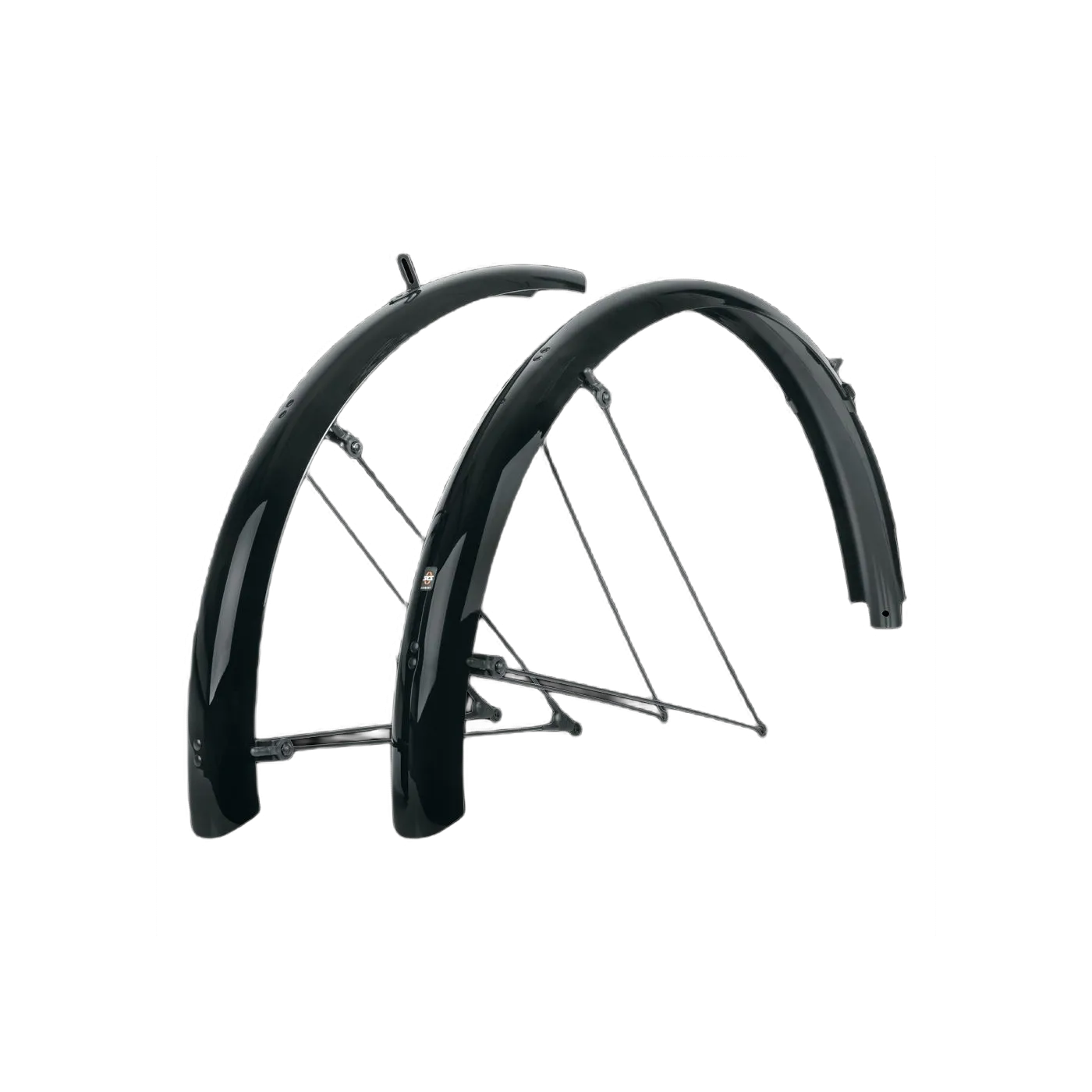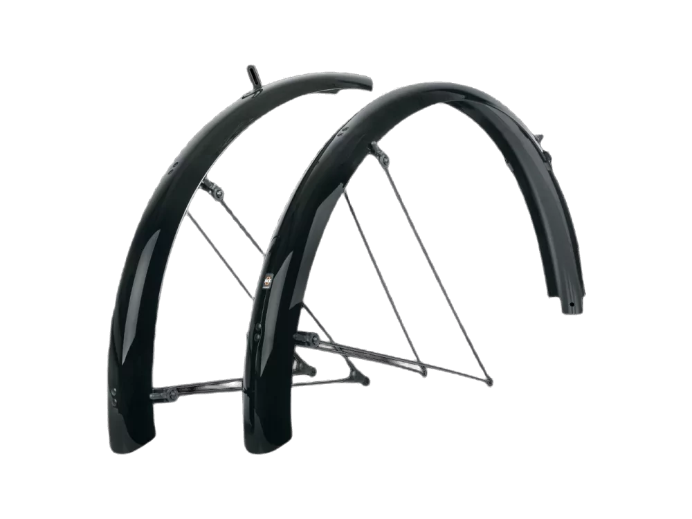 Elastyczna konstrukcja warstwowa (sandwich), w której między warstwami tworzywa zostały zatopione aluminiowe paski sprawia, że błotniki są niezwykle elastyczne i wytrzymałe. Ponadto mocowanie blisko opony zapewnia dobrą ochronę, bez względu na to, po jakiej nawierzchni się poruszasz. Dodatkowo zestaw posiada ASR system bezpieczeństwa ESC, który odłącza pręty mocujące przedniego błotnika w przypadku wkręcenia gałęzi w szprychy.