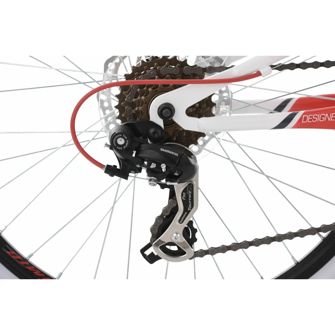 Biała rama z czerwonymi detalami przyciąga wzrok wszystkich i sprawia, że jazda jest jeszcze bardziej satysfakcjonująca. Wyposażenie techniczne roweru również nie pozostawia wiele do życzenia. Rower z pełnym zawieszeniem jest wyposażony w hamulce tarczowe, 21-biegową przerzutkę SHIMANO, a dla dopełnienia posiada także amortyzację widelca oraz ramy. Wszystko to sprawia, że rower jest niezawodny dla małych rowerzystów.