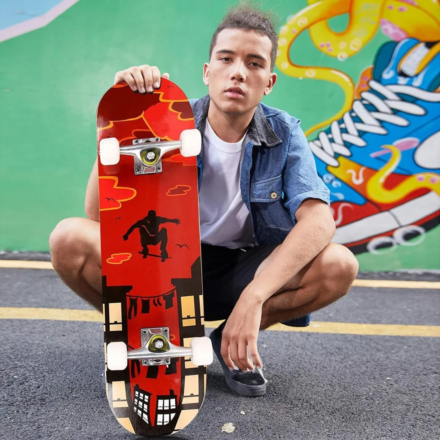 Deskorolka Hikole 3108-1 to idealne rozwiązanie zarówno dla początkujących jak i zaawansowanych skaterów. Ten model został wykonany w 100% z wysokiej jakości drewna klonowego, natomiast łożyska ABEC-7 ze stopu aluminium zapewniają doskonałe właściwości podczas jazdy.