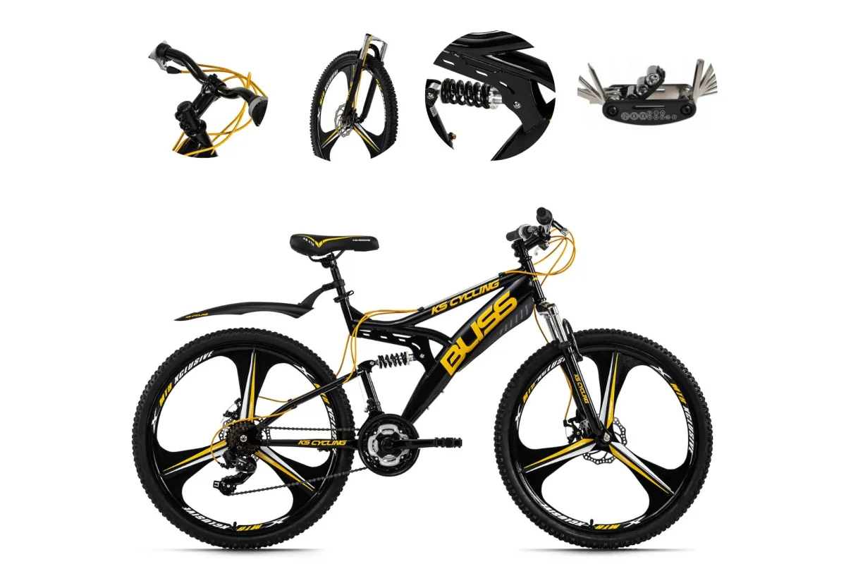 👉 Opony 26" x 2,10" zapewniają dobrą przyczepność i stabilność na różnorodnym podłożu, zwiększając komfort jazdy i kontrolę nad rowerem. Dodatkowo, rower posiada błotniki i dzwonek, co zwiększa bezpieczeństwo podczas jazdy zarówno w dzień, jak i w nocy.