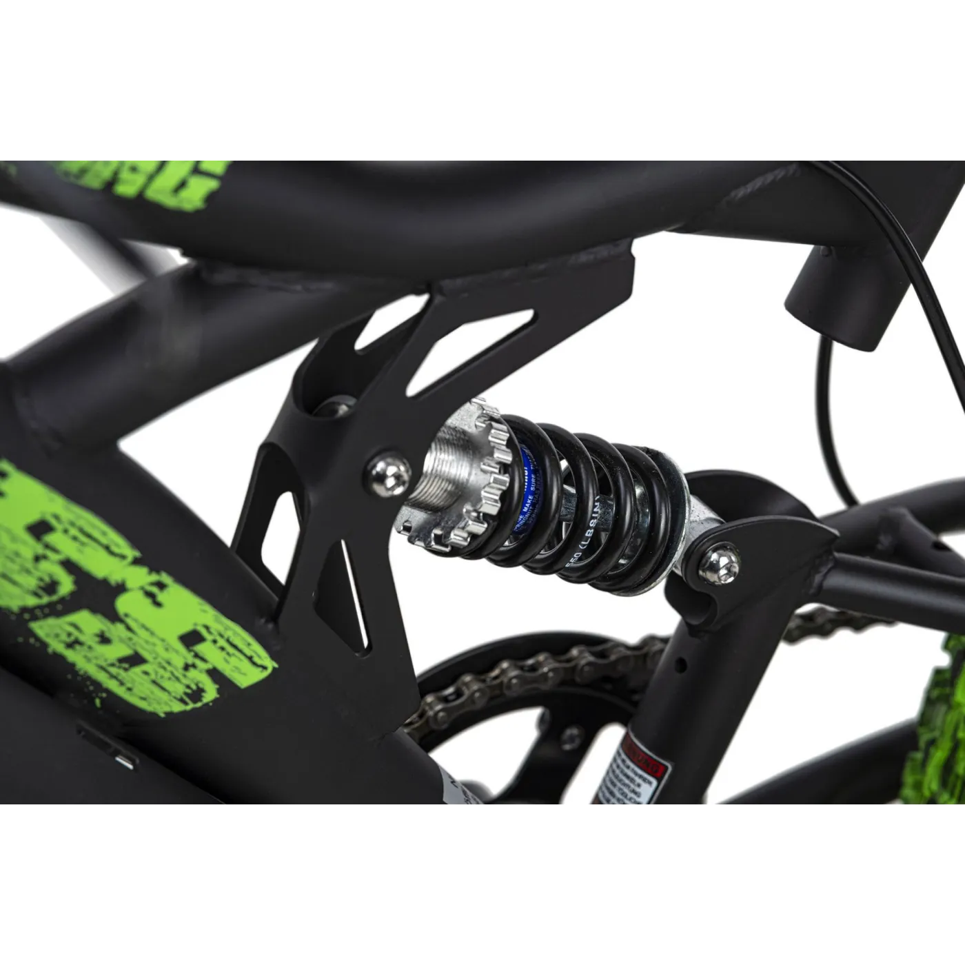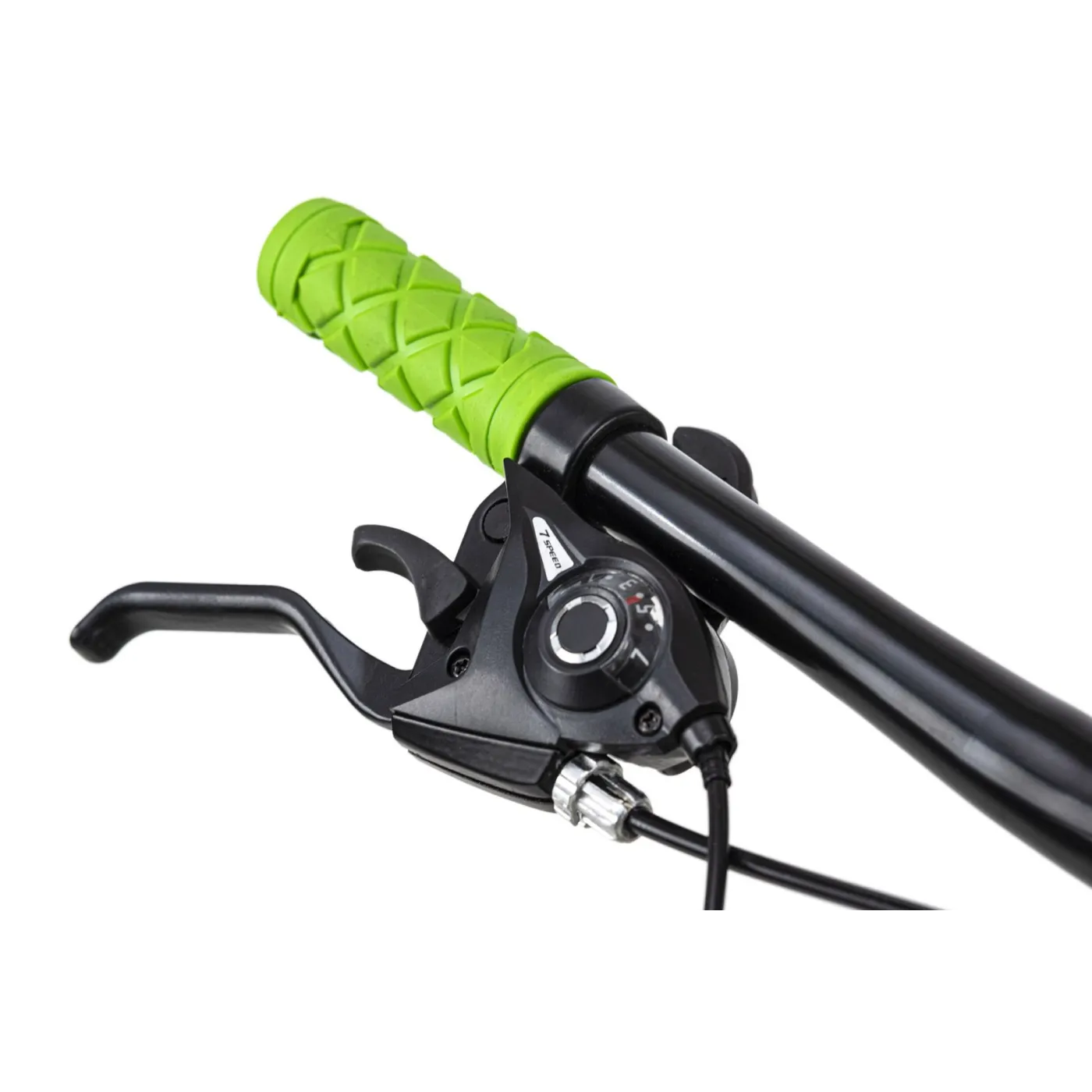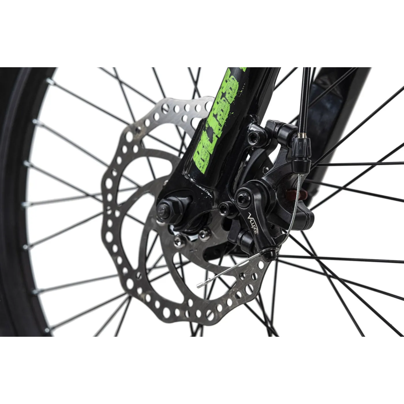 20-calowy rower dziecięcy Bliss Pro firmy KS Cycling to solidny rower górski z pełnym zawieszeniem dla najmłodszych, który w niczym nie ustępuje wersjom dla dorosłych. Malowanie opon jest wyjątkowe i zostało nałożone ręcznie na każdą z nich - nie ma drugiej takiej samej opony! Projekt w kolorze zielonym i czarnym z efektami „zniszczenia” sprawia, że rower dziecięcy przyciąga wzrok. Hamulce tarczowe zapewniają bezpieczeństwo, a 7 biegów pozwala na precyzyjne dopasowanie stylu jazdy do panujących na trasie warunków.