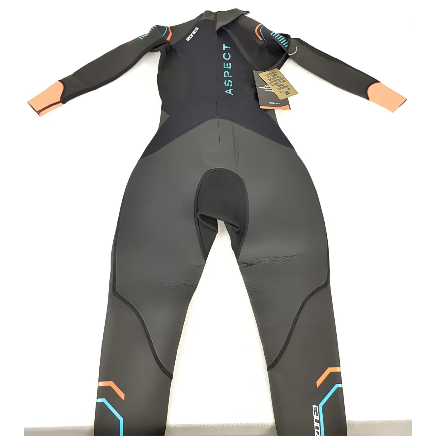 Kombinezon Zone3 Aspect w rozmiarze SM oferuje komfort użytkowania, nawet podczas długiego przebywania w wodzie. Ten model zapewnia pozycję, która sprzyja klasycznemu stylowi pływania. Panele na nogawkach są wycięte, ponadto szwy są szyte od wewnątrz i zagrzewane od zewnątrz, co zapobiega przedostawaniu się chłodnej wody.