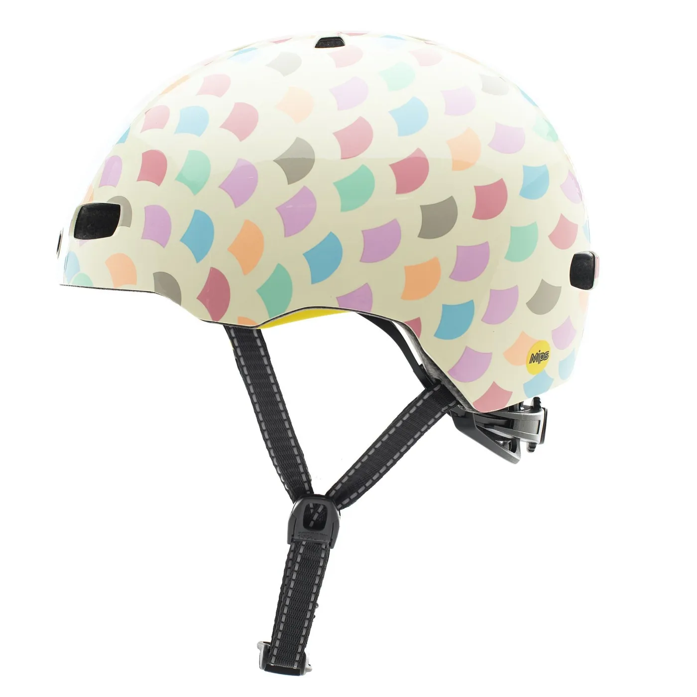 Jazda na rowerze stanie się o wiele przyjemniejsza dzięki kaskowi rowerowemu firmy Nutcase. Ten kask Street Scale jest całkowicie pokryty małymi kolorowymi rybimi łuskami. Ten oryginalny projekt zapewniający niepowtarzalny wygląd. Ponadto, model Street posiada wiodącą ochronę MIPS, która porusza się wraz z głową i pozwala na niewielki ruch pomiędzy kaskiem a głową, dzięki czemu siła uderzenia w przypadku upadku jest lepiej absorbowana. Ten unikalny system sprawia, że kaski Nutcase są jeszcze bezpieczniejsze niż dotychczas.