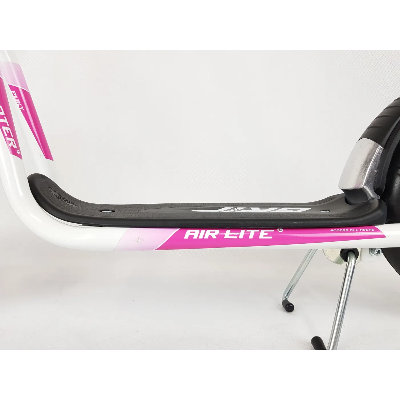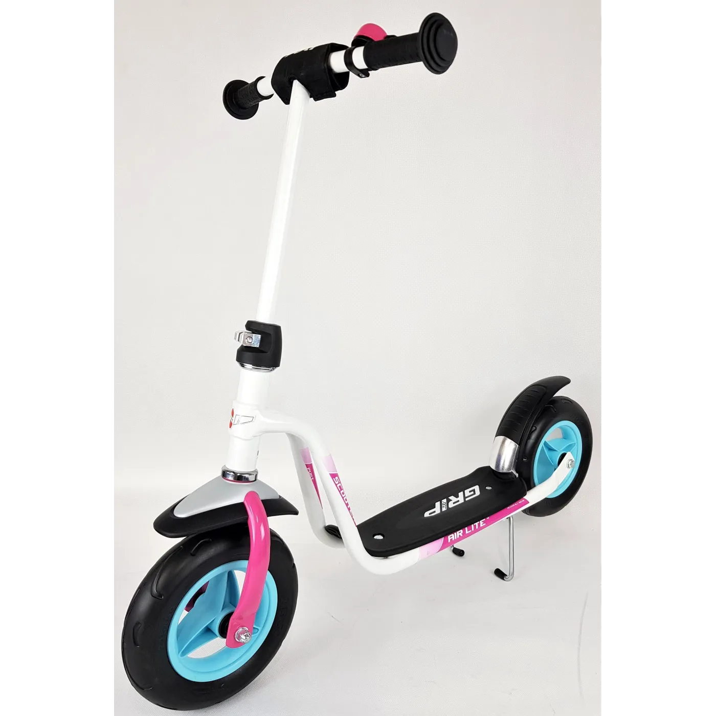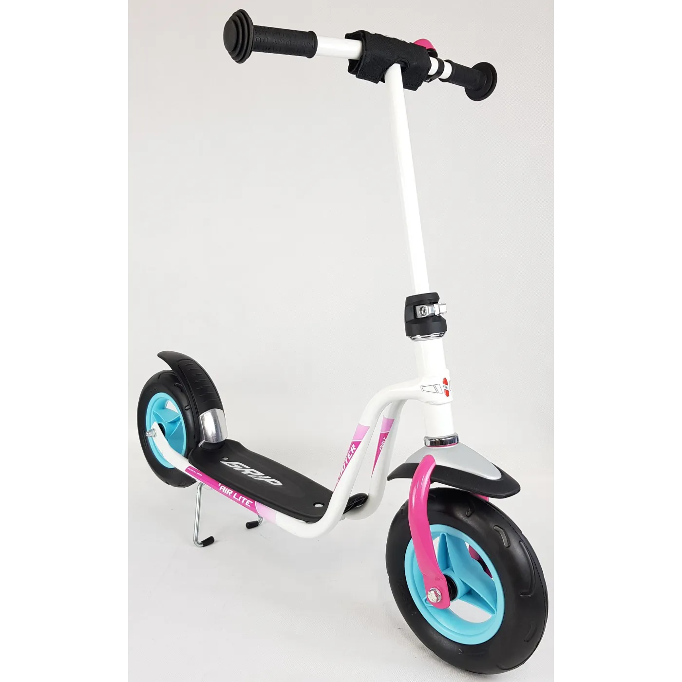 PUKY R 03 to niewielka dwukołowa hulajnoga z piankowymi oponami, która oferuje wszystko, co tradycyjna hulajnoga dla dzieci od 3 lat. Miękkie, komfortowe opony w rozmiarze 8,4 cala z łatwością pokonują mniejsze przeszkody, zapewniają przyczepność i są bardzo ciche. R 03 dodatkowo wyposażona jest w dzwonek, składaną podpórkę i hamulec typu "kick" w tylnym kole. Hamulec jest zintegrowany z tylnym błotnikiem i może być obsługiwany zarówno lewą, jak i prawą stopą. Łożyska kulkowe w kierownicy i kołach zapewniają łatwą obsługę, dobre właściwości jezdne i dużą trwałość - antypoślizgowy podest zapewnia bezpieczne odpychanie się.