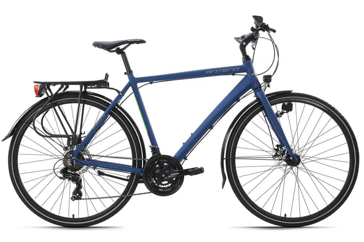Śmiało odkrywaj świat na rowerze trekkingowym Antero! Rower przyciąga wzrok swoim designem i charakteryzuje się przede wszystkim lekką aluminiową ramą oraz łatwą regulacją płaskiej kierownicy turystycznej pod względem wysokości i kąta nachylenia. Ale rower ma nie tylko wiele do zaoferowania wizualnie, wyposażenie techniczne mówi samo za siebie: dzięki 21-biegowej przerzutce Shimano jesteś dobrze przygotowany na każde wzniesienie. Mechaniczne hamulce tarczowe z przodu i z tyłu zapewniają niezbędne opóźnienie. Dzięki systemowi oświetlenia jesteś zawsze bezpieczny na drodze, nawet w ciemności.