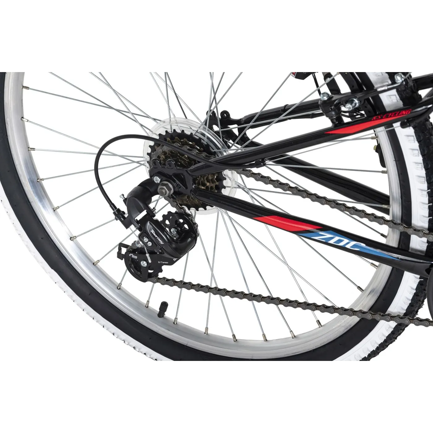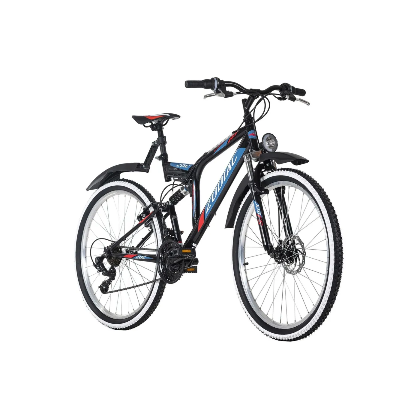 KS Cycling Zodiac z kołami 26" posiada pełne zawieszenie i jest wręcz idealnym jednośladem dla początkujących kolarzy górskich! Wyróżnia się również zastosowaną kolorystyką oraz świetnym wyposażeniem. Model jest wyposażony w 21-biegowy system przerzutek, które są wygodnie obsługiwane za pomocą obrotowych manetek Saiguan. Dodatkowo rower wyposażony jest w hamulce V-brake oraz tarczowe, wszystko to w trosce o zapewnienie Ci maksymalnej kontroli na jednośladem.