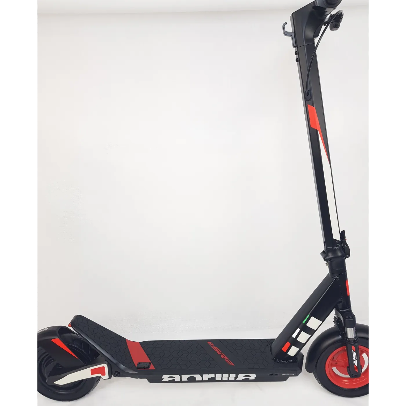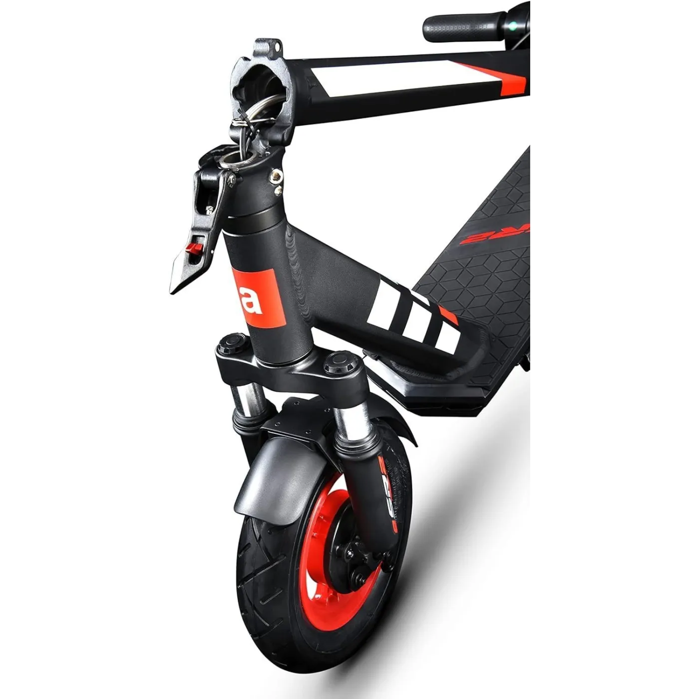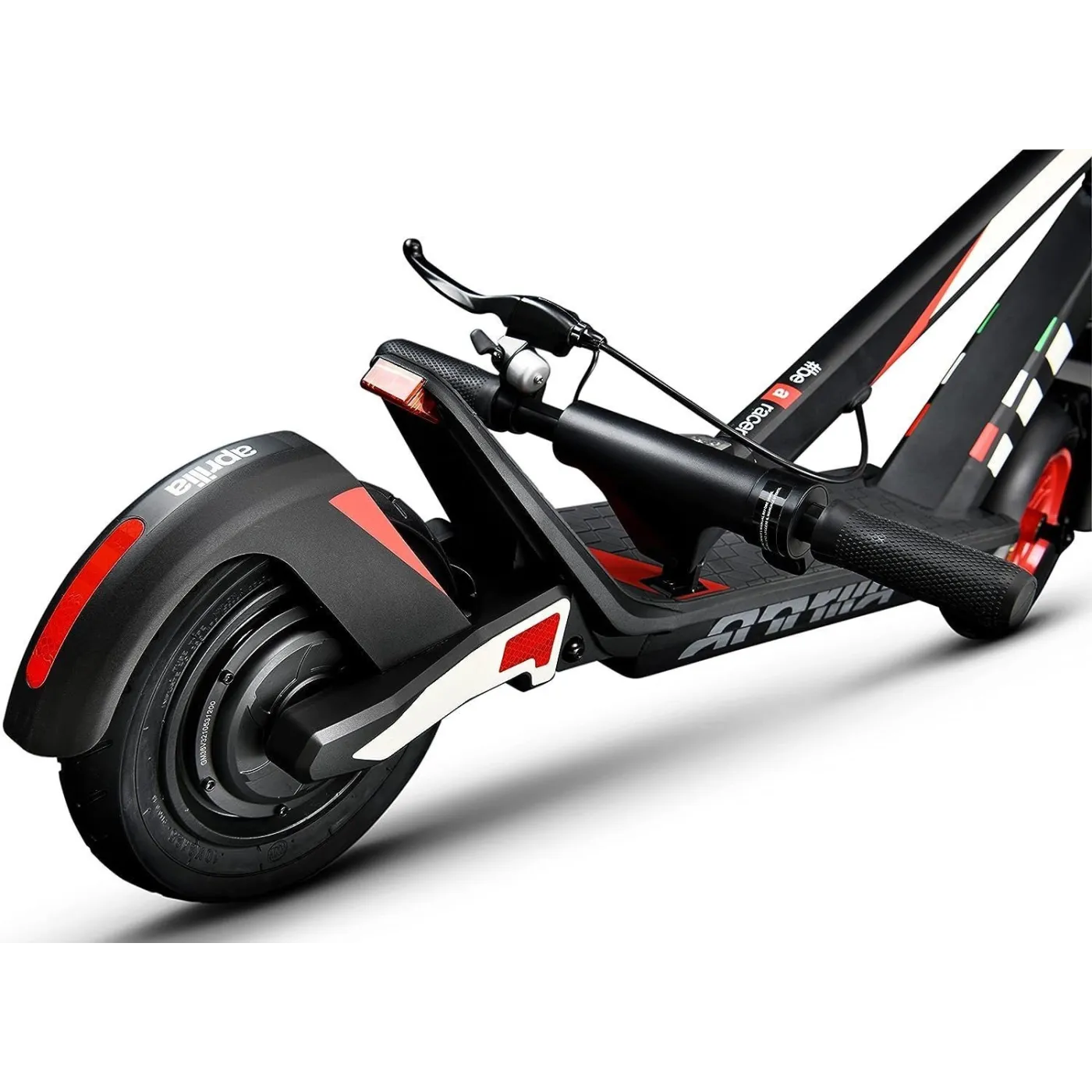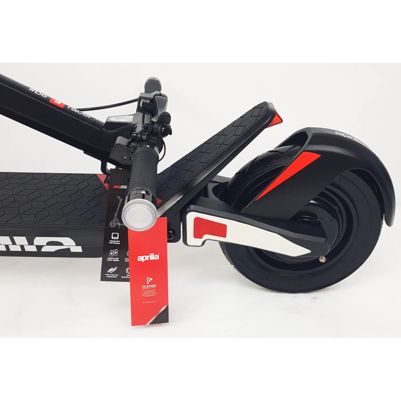 Hulajnoga elektryczna Aprilia eSR2 jest wyposażona w mocny silnik 350W, który osiąga prędkość do 25 km/h. Bezpieczne poruszanie się po mieście w każdej sytuacji zapewnia przedni bębnowy i tylny elektryczny hamulec tarczowy oraz przednie i tylne oświetlenie LED dla doskonałej widoczności nawet w ciemności. Czytelny wyświetlacz LCD zapewnia wygodną obsługę i doskonałą czytelność wszystkich informacji, dotyczących jazdy! Wysokiej jakości, duże koła 10” z podwójnie amortyzowanym widelcem przedniego koła oraz podwójną amortyzacją tylnego koła gwarantują komfortową jazdę bez hałasów.