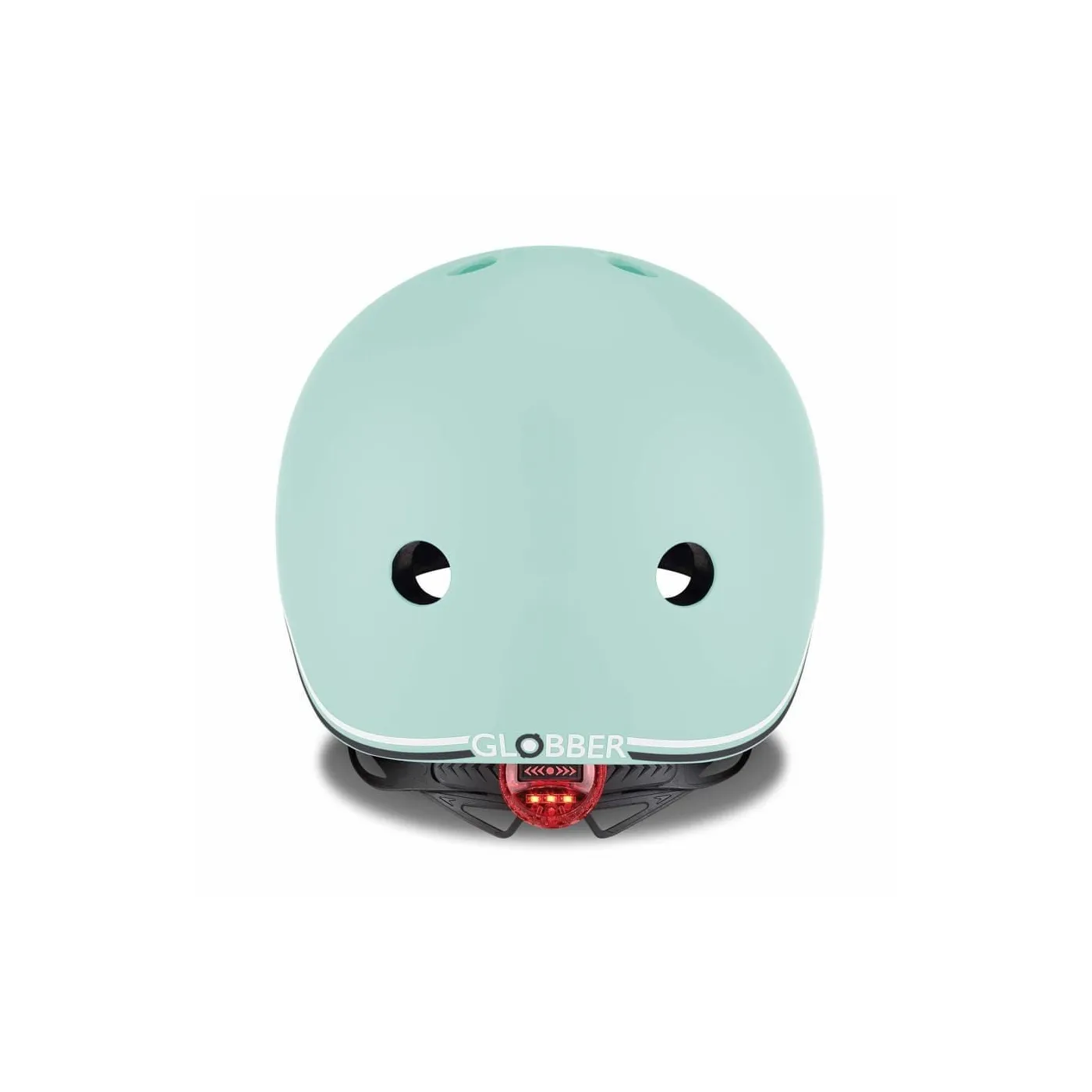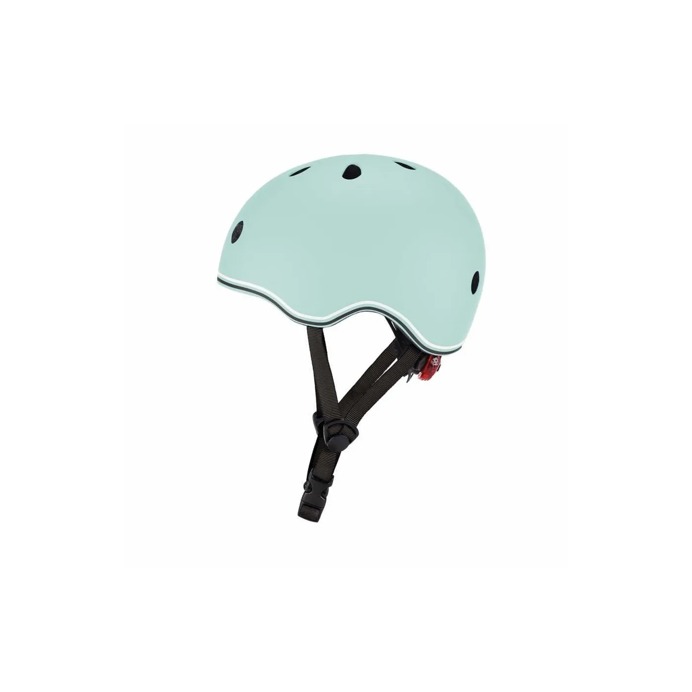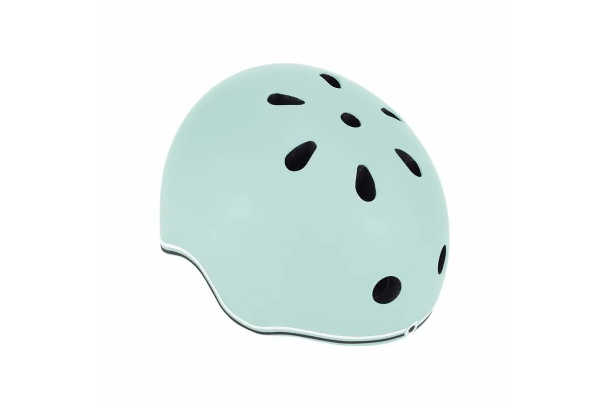 Globber Kids to dziecięcy kask rowerowy pozwalający na łatwe dostosowanie rozmiaru kasku za pomocą tylnego pokrętła. Odporna skorupa kasku wykonana z poliwęglanu In-mold (PC) zapewnia maksymalne pokrycie głowy i jest wyposażona w amortyzującą wyściółkę z pianki EPS, uszczelniające piankowe wkładki o grubości 7 mm i miękki podbródek, co zapewnia doskonałą ochronę i wygodę. Ponadto, kask ma z tyłu lampkę LED zasilaną bateryjnie, która miga w 3 różnych trybach (włączony / błysk / szybki błysk), zapewniając maksymalną widoczność i dodatkowe bezpieczeństwo.