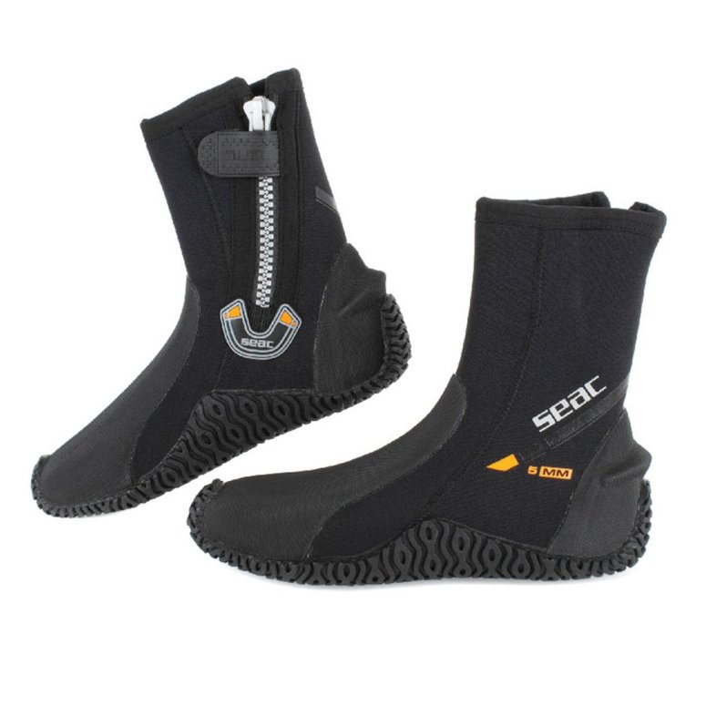 Utrzymuj stopy w cieple i komforcie dzięki SEAC Basic HD. Są to wysokie buty nurkowe do ochrony stóp i kostek z półsztywną antypoślizgową podeszwą. Wykonane z 5 mm neoprenu, te buty chronią stopę przed niskimi temperaturami i pomagają zapobiegać irytującym zimnym skurczom, zapewniając wysoki komfort.