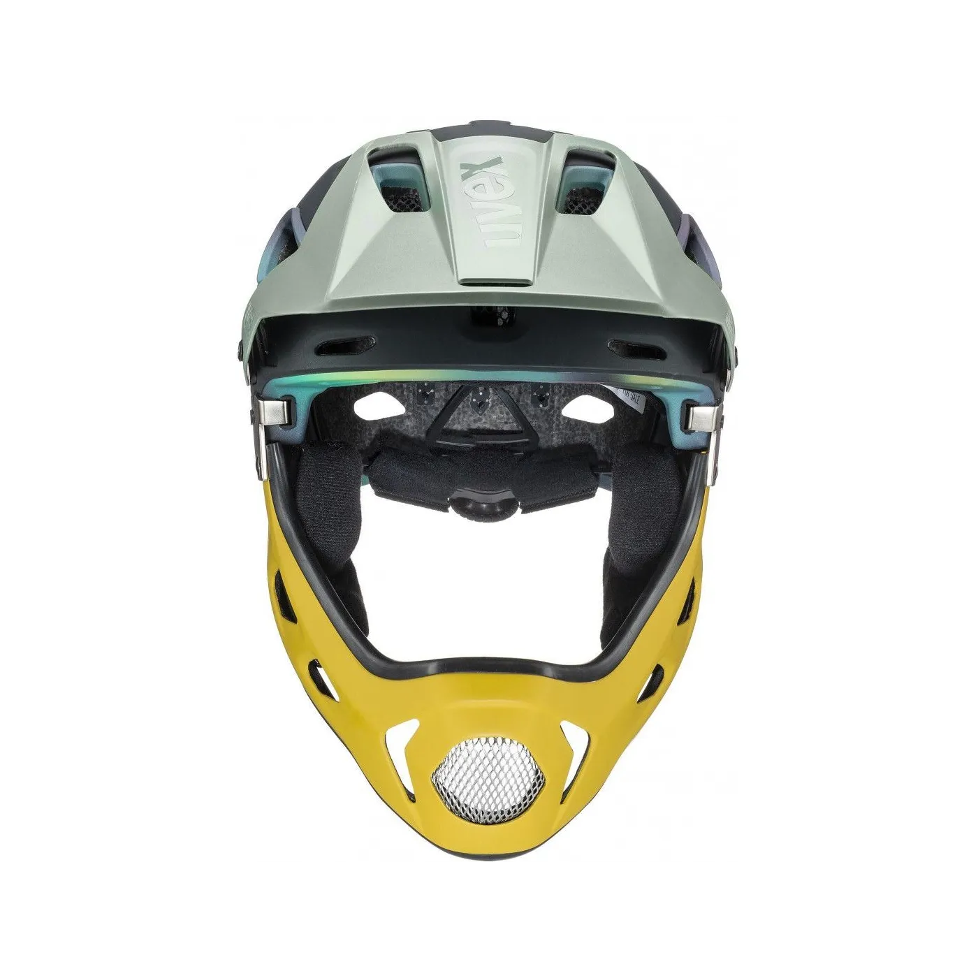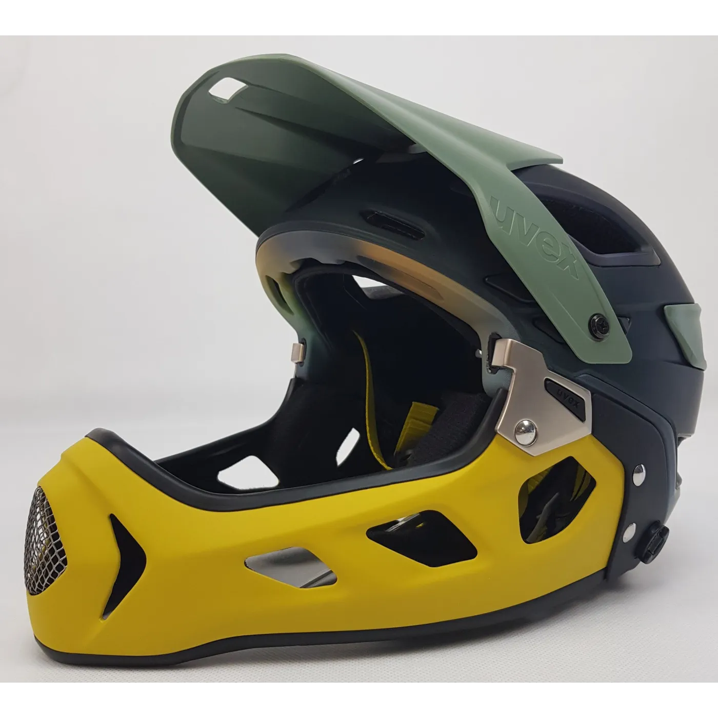 Kask rowerowy Uvex Jakkyl HDE 2.0 BOA posiada wygodną możliwość zdejmowania szczęki. Dzięki temu możemy używać go zarówno podczas downhillu, jak i w wyścigach MTB, a także na co dzień. Niska waga oraz wyjmowana, antyalergiczna wyściółka VENT CARBON z możliwością prania zapewniają wysoki komfort użytkowania nawet w ciężkich warunkach. Dodatkowo, regulowany, zdejmowany daszek zabezpiecza przed nieprzyjemnym światłem słonecznym. Wygodne zamknięcie MONOMATIC oraz system pełnego pierścienia BOA 360 ° wraz z regulowanym systemem pasków FAS dla idealnego dopasowania. Kask posiada uchwyt do gogli, które zdecydowanie przydają się podczas ekstremalnego downhillu.