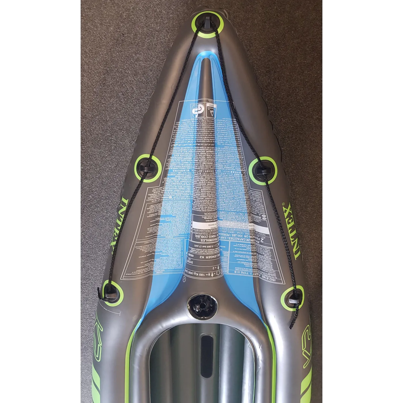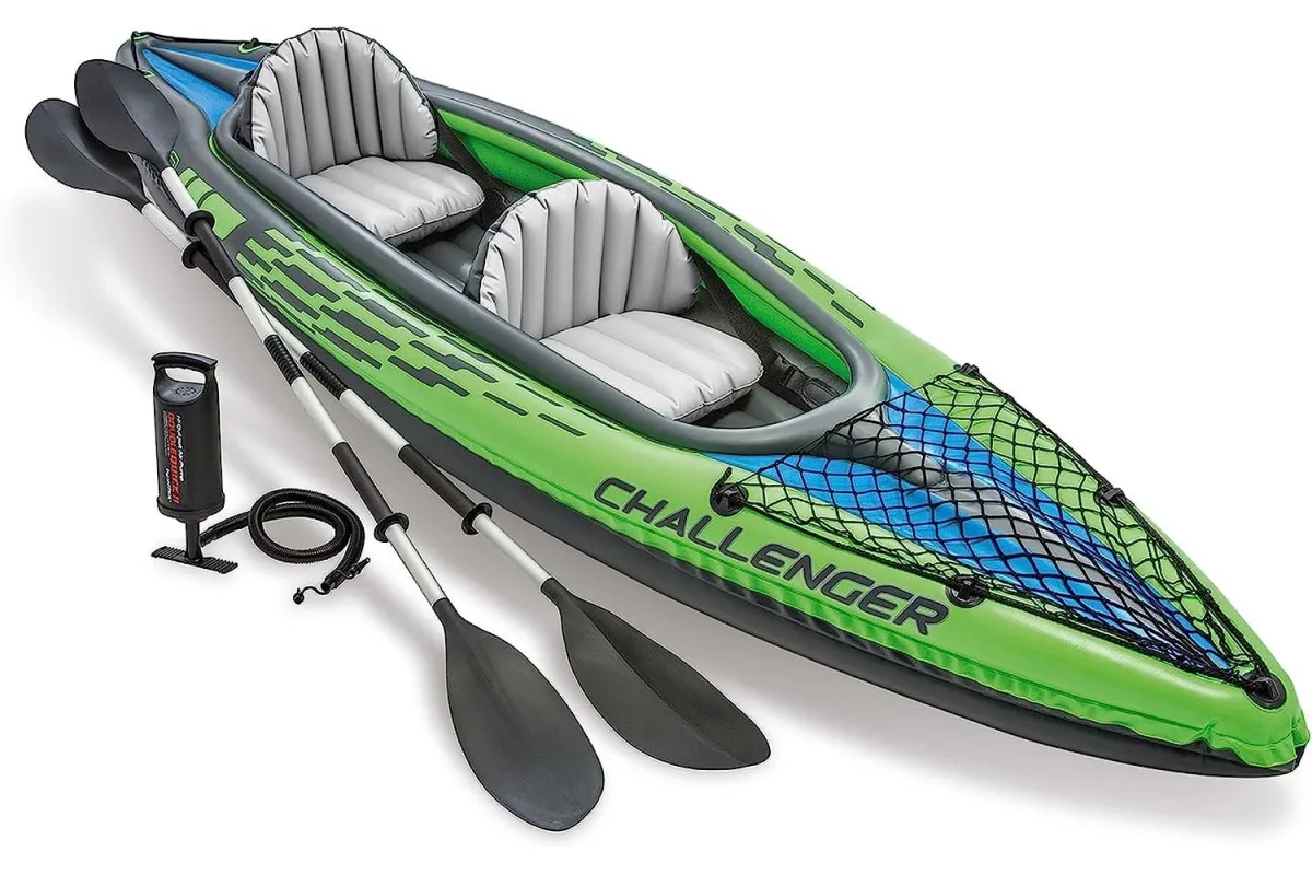 Kajak Intex Challenger K2 jest dwuosobowy, a dzięki wymiarom 351x76x38cm gwarantuje naprawdę dużą swobodę ruchów. Dodatkowo dookoła kajaku znajduje się linka ułatwiająca jego chwytanie w razie wywrotki. Na wyposażeniu znajdują się także dmuchane siedziska. Do zestawu dołączone są także dwa aluminiowe, bardzo wytrzymałe wiosła, które są jednocześnie bardzo lekkie i mogą być swobodnie używane przez każdego.