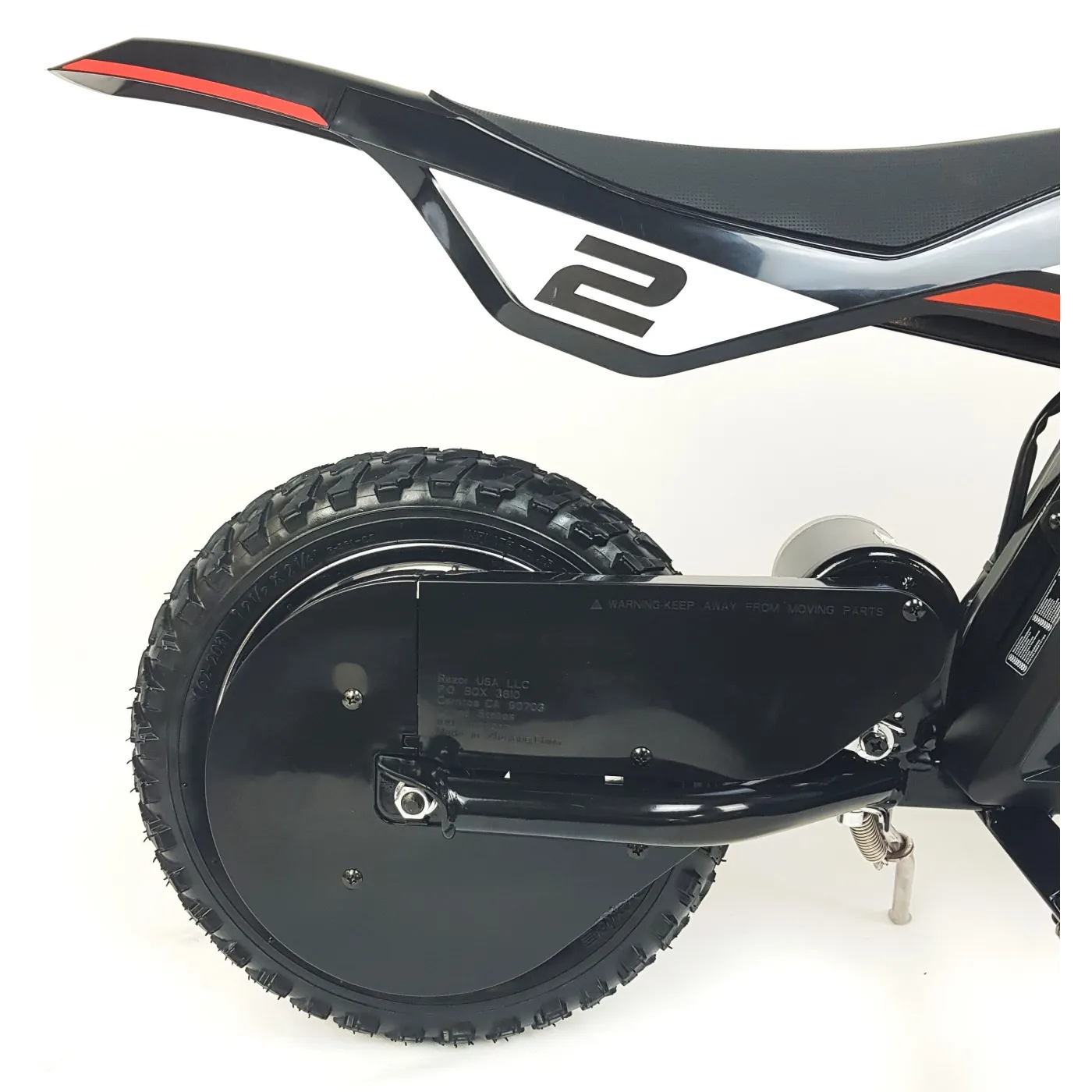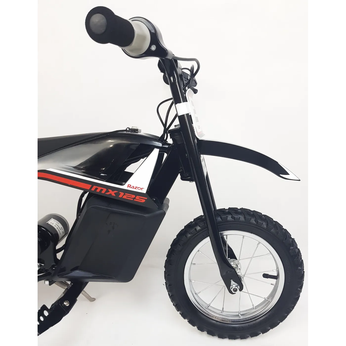Motorek dla dziecka RAZOR Dirt Rocket MX125 został stworzony z myślą o budowaniu pewności za kierownicą od najmłodszych lat. Pojazd dostosowany rozmiarem do młodego człowieka, dzięki temu bezpieczna jazda jest łatwa i wygodna. Wyposażony w silnik dostosowany do rozmiarów, profilowane siedzisko i wyjątkowo czułe hamulce, ma za zadanie sprawić dziecku radość, przy jednoczesnym zapewnieniu bezpieczeństwa. Ten mini motocykl przeznaczony jest dla dzieci powyżej 7 roku życia.