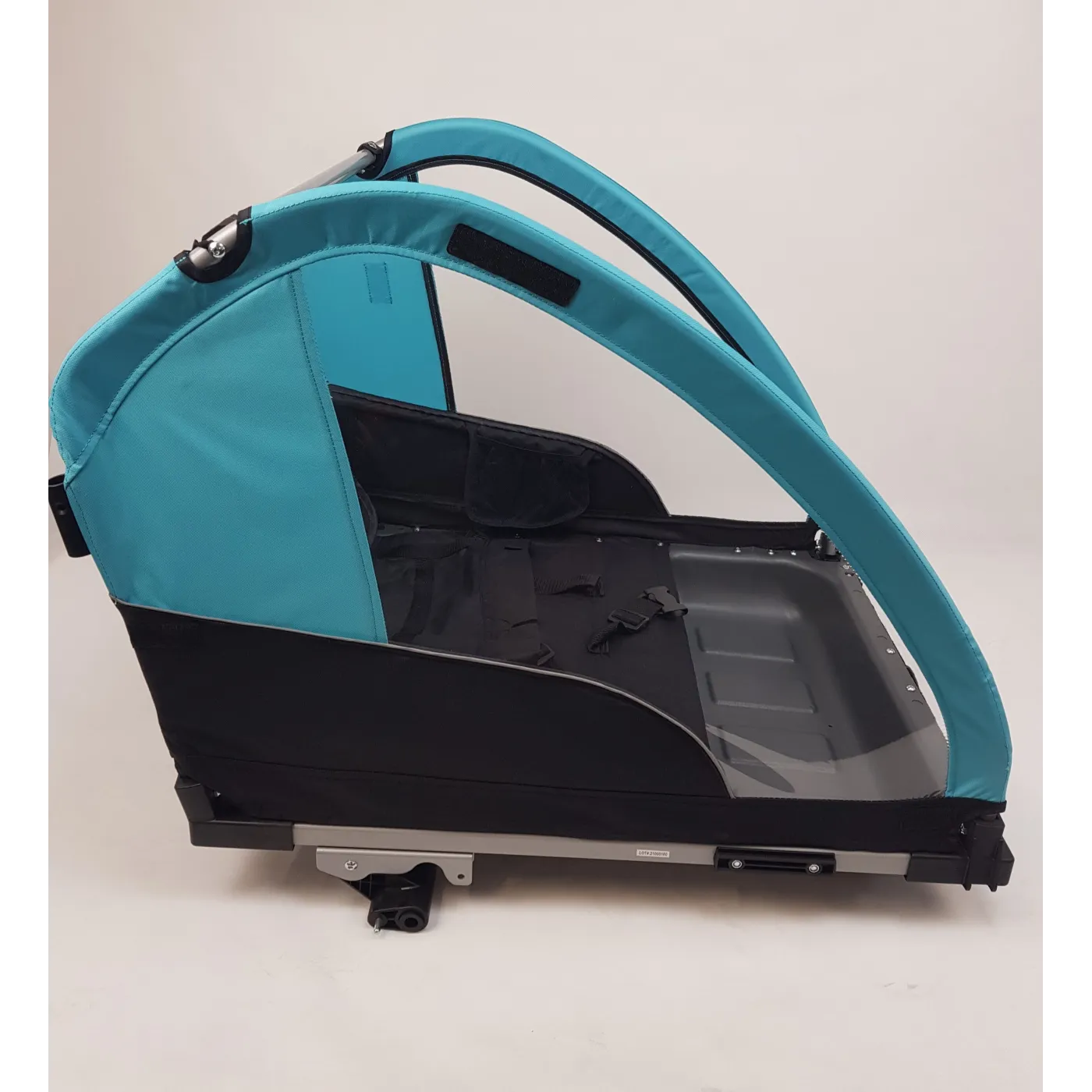 Przyczepka posiada lekką i mocną aluminiową ramę zawierającą system zawieszenia poprawiający komfort małych pasażerów. Przedział posiada duże przezroczyste panele, które zwiększają wygodę dziecka. Przedni kaptur dostosowuje się do warunków atmosferycznych, posiada górne wodoodporne okienko i podszewkę z siatki przeciw owadom. Tkanina poliestrowa 600D jest trwała, odporna na zużycie i warunki atmosferyczne. Bagażnik z tyłu zapewnia wygodne miejsce do przechowywania rzeczy. Bezpieczeństwo jest zwiększone dzięki wielu odblaskowym detalom.