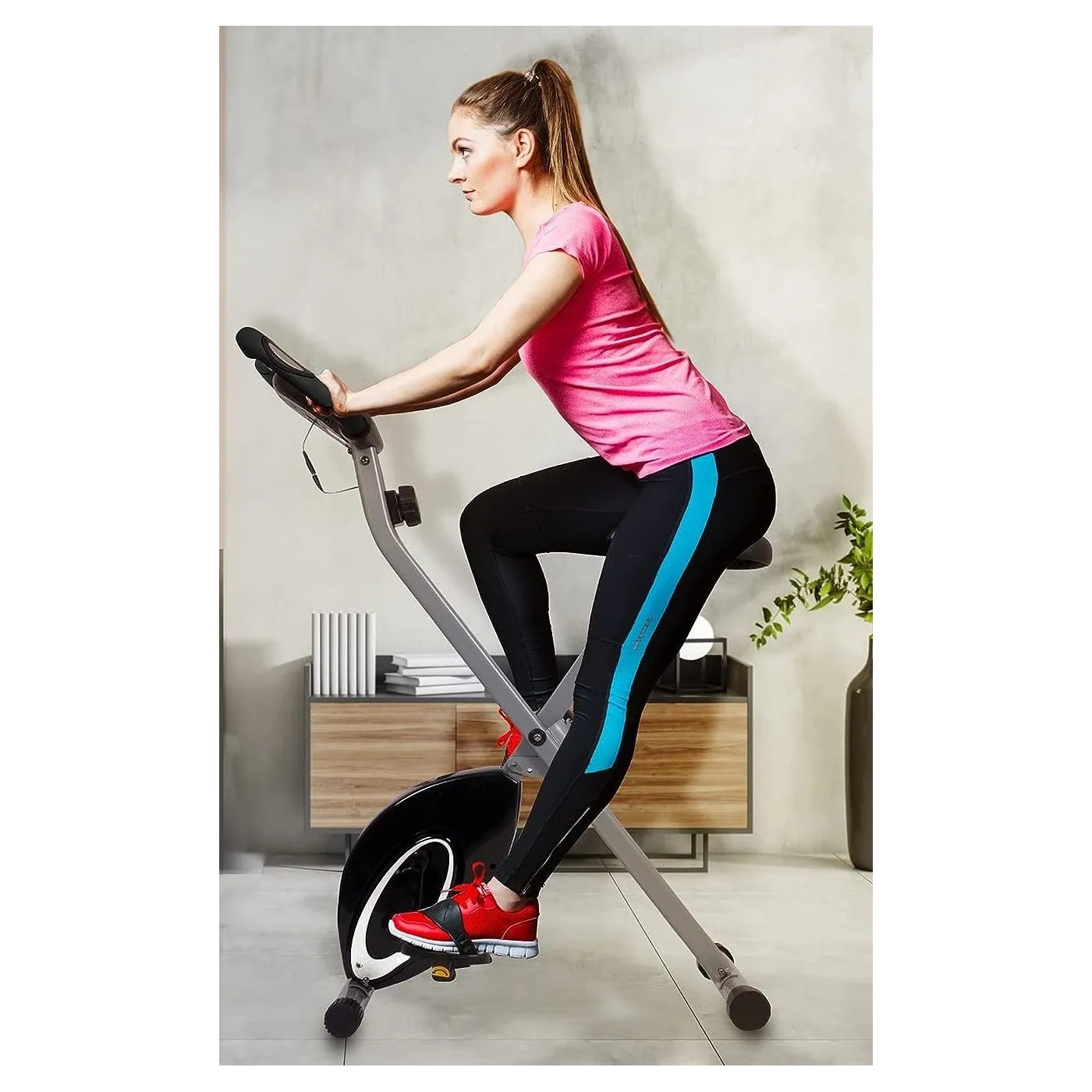Ultrasport F-Bike to składany rower treningowy z 8 poziomami oporu, który świetnie sprawdza się w domach i niewielkich mieszkaniach. Ten model pozwala na szybki i intuicyjny montaż oraz demontaż. Ponadto, trening na tym rowerze przyczynia się do wzmocnienia układu sercowo-naczyniowego, a także rozbudowy mięśni. Dzięki kompaktowym rozmiarom i możliwości złożenia, możesz go przechowywać w dowolnym miejscu. Dodatkowo, posiada komputer treningowy z wyświetlaczem LCD, który może mierzyć czas, skanowanie, kalorie, prędkość, dystans i tętno. Na kierownicy znajduje się również czujnik pulsu dłoni.