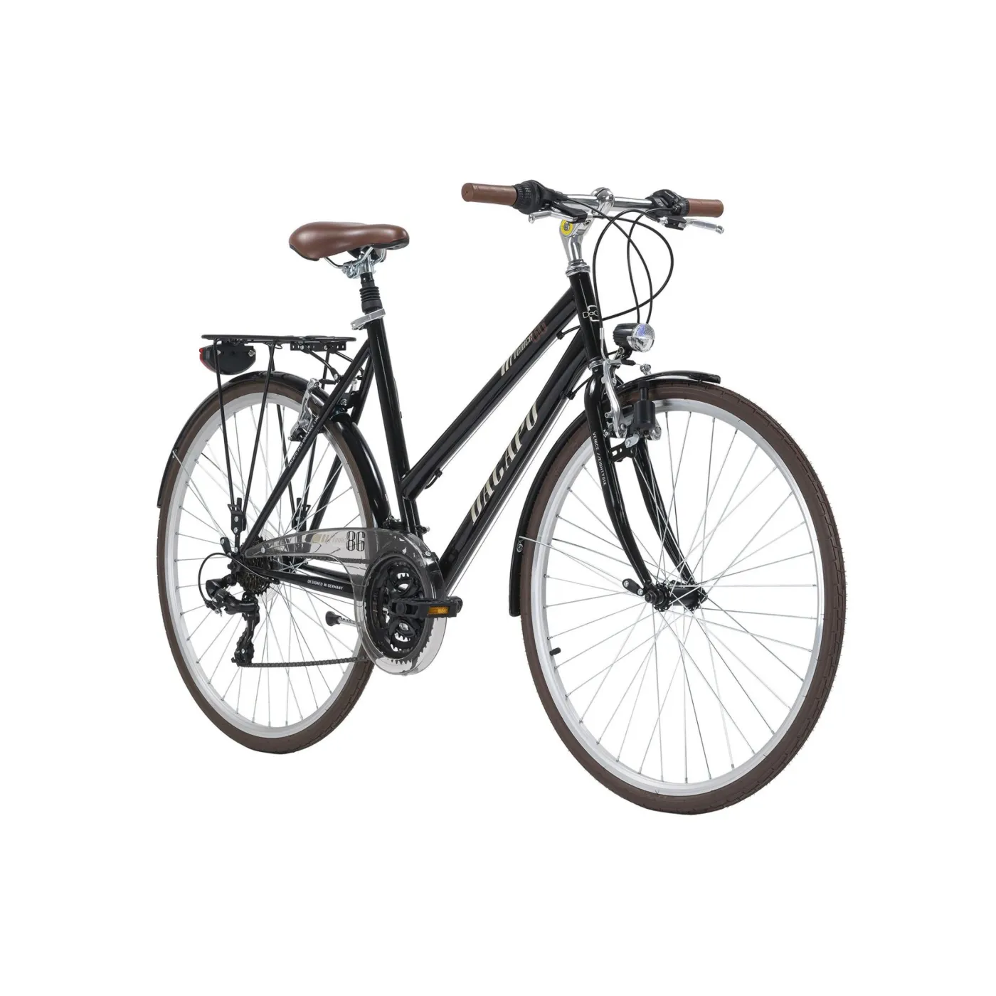 👌 Opony w rozmiarze 28" x 1,35" zapewniają stabilność i doskonałą przyczepność zarówno na suchym, jak i mokrym asfalcie. Bagażnik umożliwia przewożenie potrzebnych rzeczy w podróży, a dzwonek, odblaski oraz światła, które zasilane są za pomocą dynamo, zwiększają Twoje bezpieczeństwo na drodze.