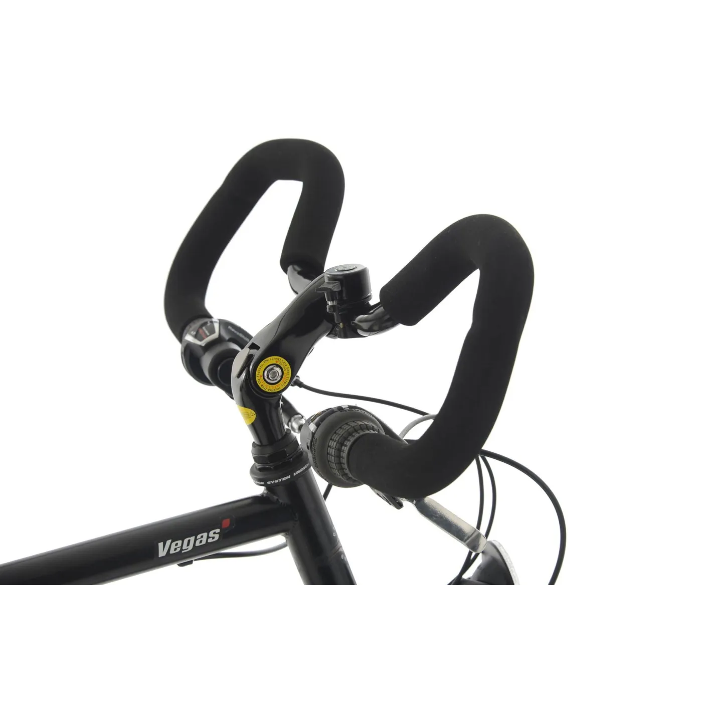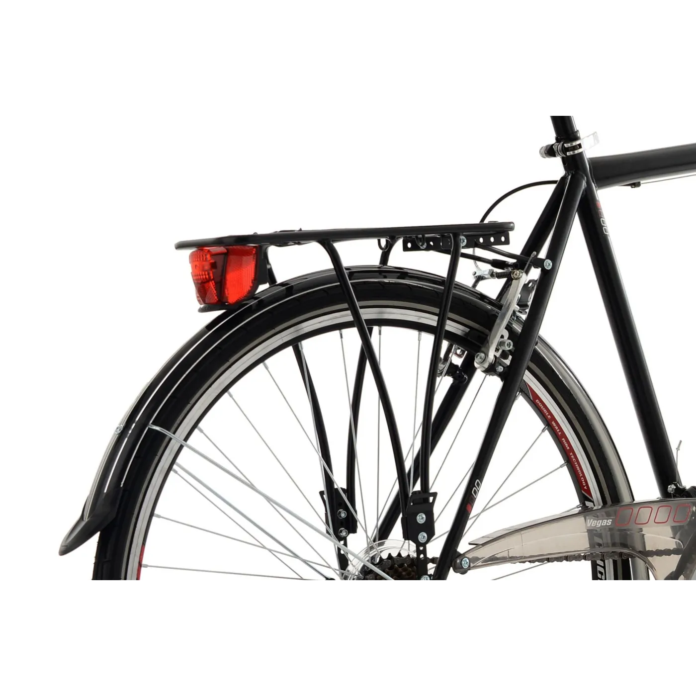 Niezależnie od tego, czy chcesz wygodnie jeździć po mieście, czy planujesz dłuższą wycieczkę: Vegas od KS Cycling sprawdzi się idealnie za każdym razem. Ma czarną ramę z eleganckimi białymi detalami. Dzięki 21-biegowej przerzutce pochyłości nie będą stanowić już żadnego problemu, a Ty precyzyjnie dobierzesz styl jazdy do panujących na trasie warunków. Bogate wyposażenie stanowi o tym, że ten jednoślad jest kompletny.