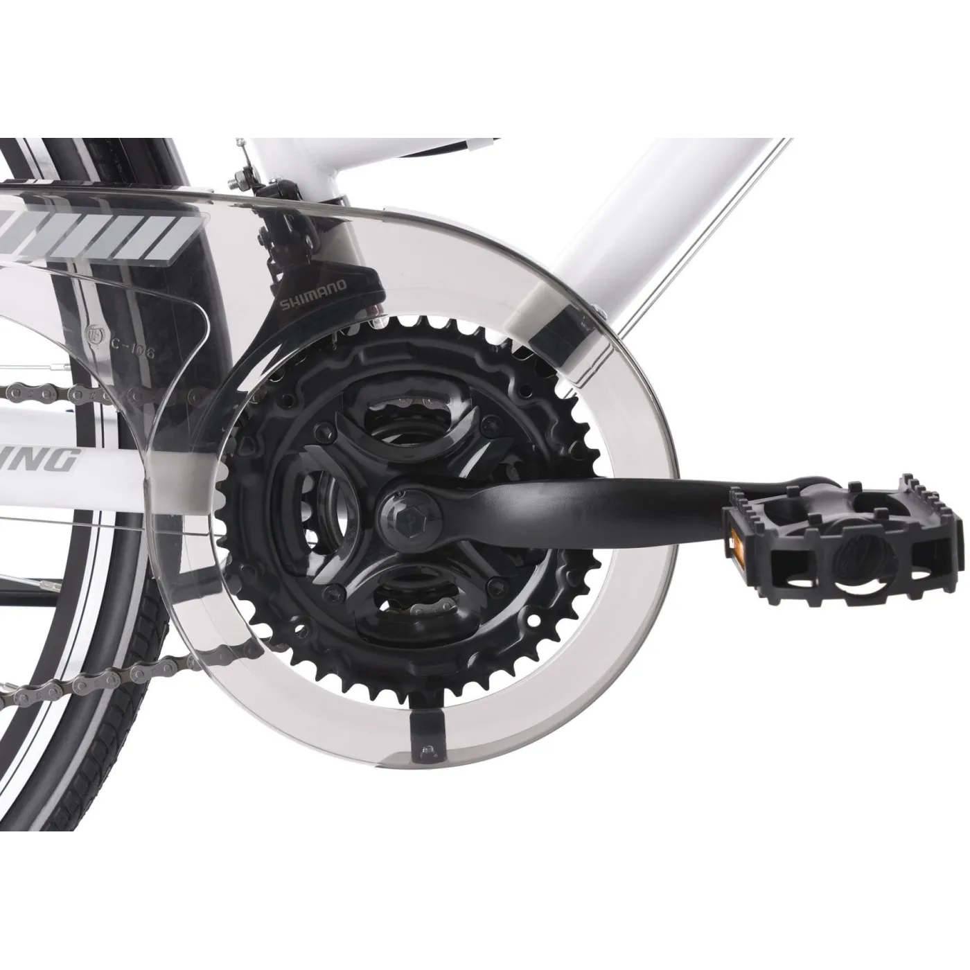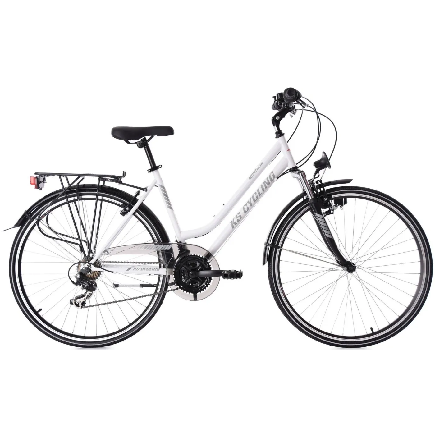 Towarzysz na każdym terenie - ten 28-calowy damski rower trekkingowy świetnie sprawdza się na codzienne przejażdżki. 21-biegowa przerzutka umożliwia łatwe pokonanie każdego wzniesienia, a amortyzowany widelec sprawia, że małe wyboje a trasie są już niemal niezauważalne. Na dłuższych trasach możesz również przechować swój bagaż na bagażniku. Ponadto, rower jest wyposażony w system oświetlenia.