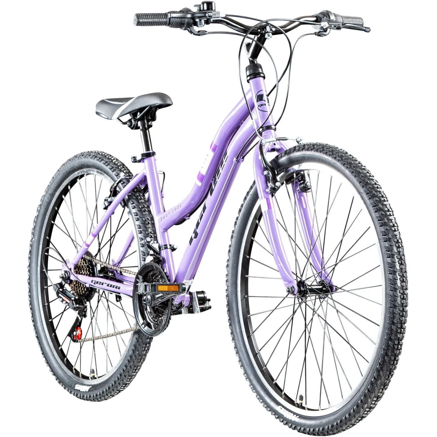 Dla aktywnych nastolatek, które lubią spędzać czas na świeżym powietrzu, rower górski Geroni Swan Lady Lila jest idealny. Ten rower z 26-calowymi kołami to prawdziwy hardtail MTB. Rama jest wykonana w całości ze stali. Materiał ten jest na tyle mocny, że bez problemu wytrzyma codzienną eksploatację, a jednocześnie na tyle lekki, aby nie utrudniać użytkowania. Rower ma 21 biegów, dzięki którym możesz szybko pokonywać wzgórza i doliny. Ten model jest polecany szczególnie dla osób o wzroście od 155 do 170 cm.