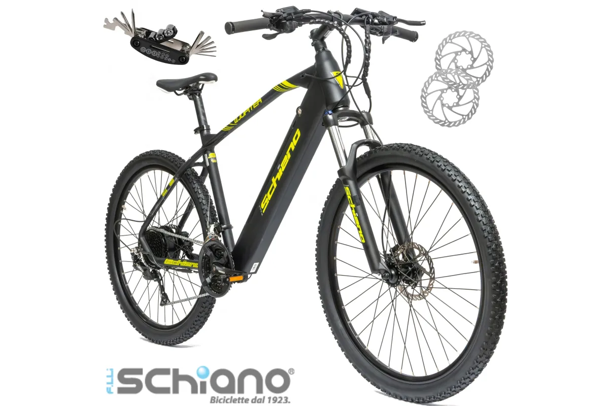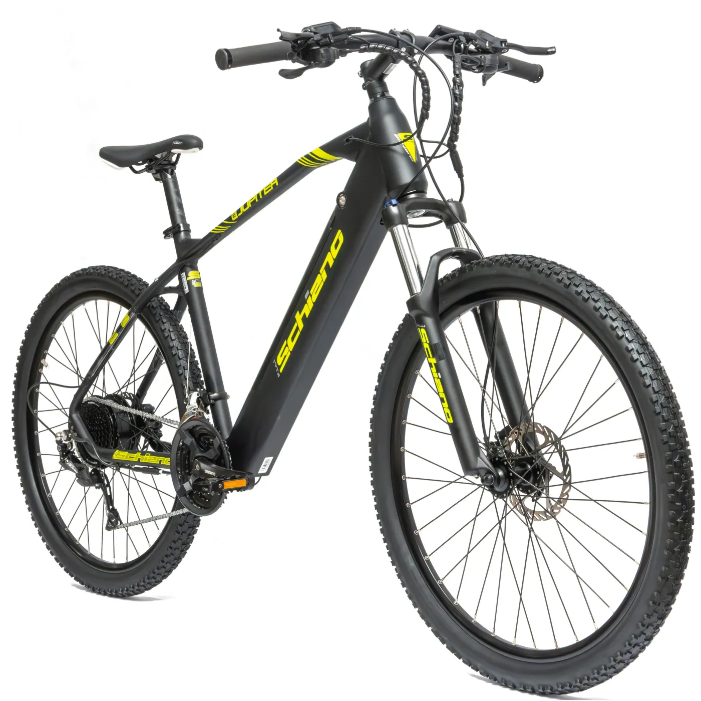 ⚡ Nowoczesny rower elektryczny F.lli Schiano E-Jupiter łączy w sobie niezawodność, komfort jazdy i imponującą wydajność. Zbudowany z myślą o miłośnikach przygód, którzy cenią sobie komfort i wytrzymałość, stanowi perfekcyjne rozwiązanie zarówno do codziennej jazdy, jak i dłuższych wypadów poza miasto. Lekka, a jednocześnie trwała rama aluminiowa o rozmiarze 19" oraz górna rura o długości 63 cm zapewniają doskonałą ergonomię i stabilność podczas każdej trasy. Całość osadzona jest na wytrzymałym amortyzowanym widelcu przednim, który skutecznie niweluje wstrząsy i gwarantuje płynną jazdę nawet na nierównym terenie.