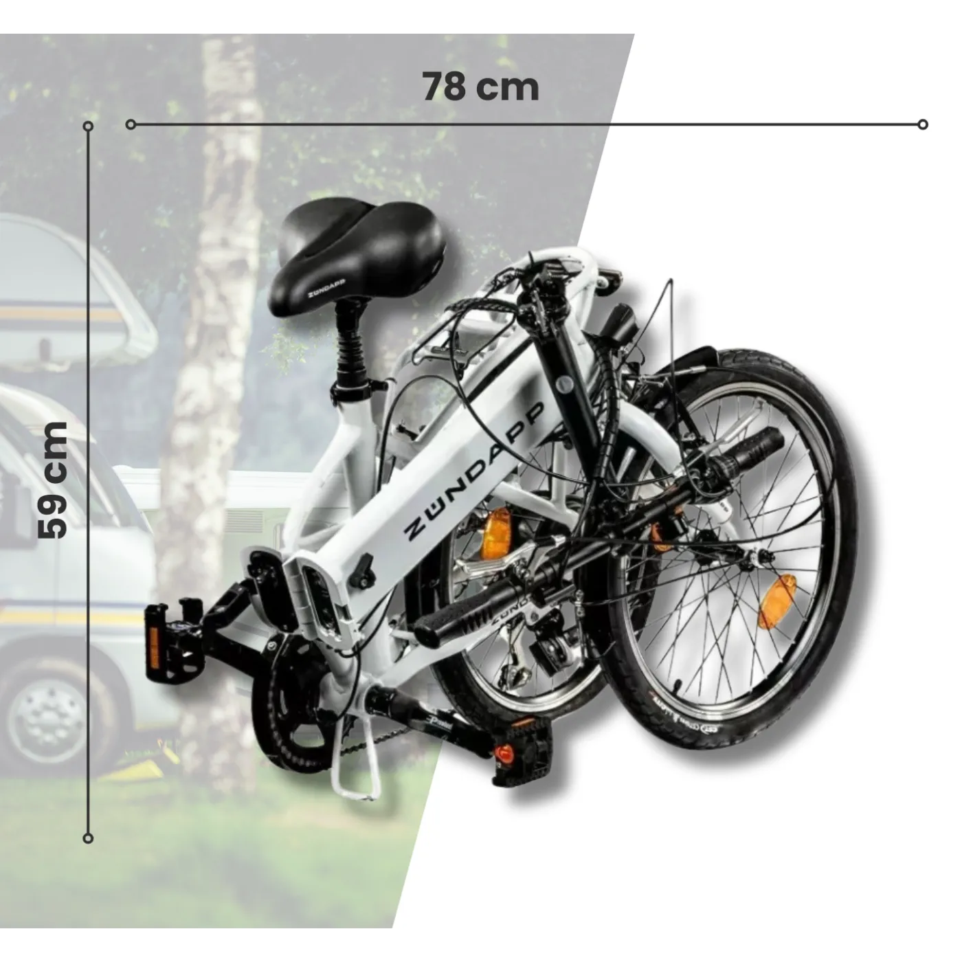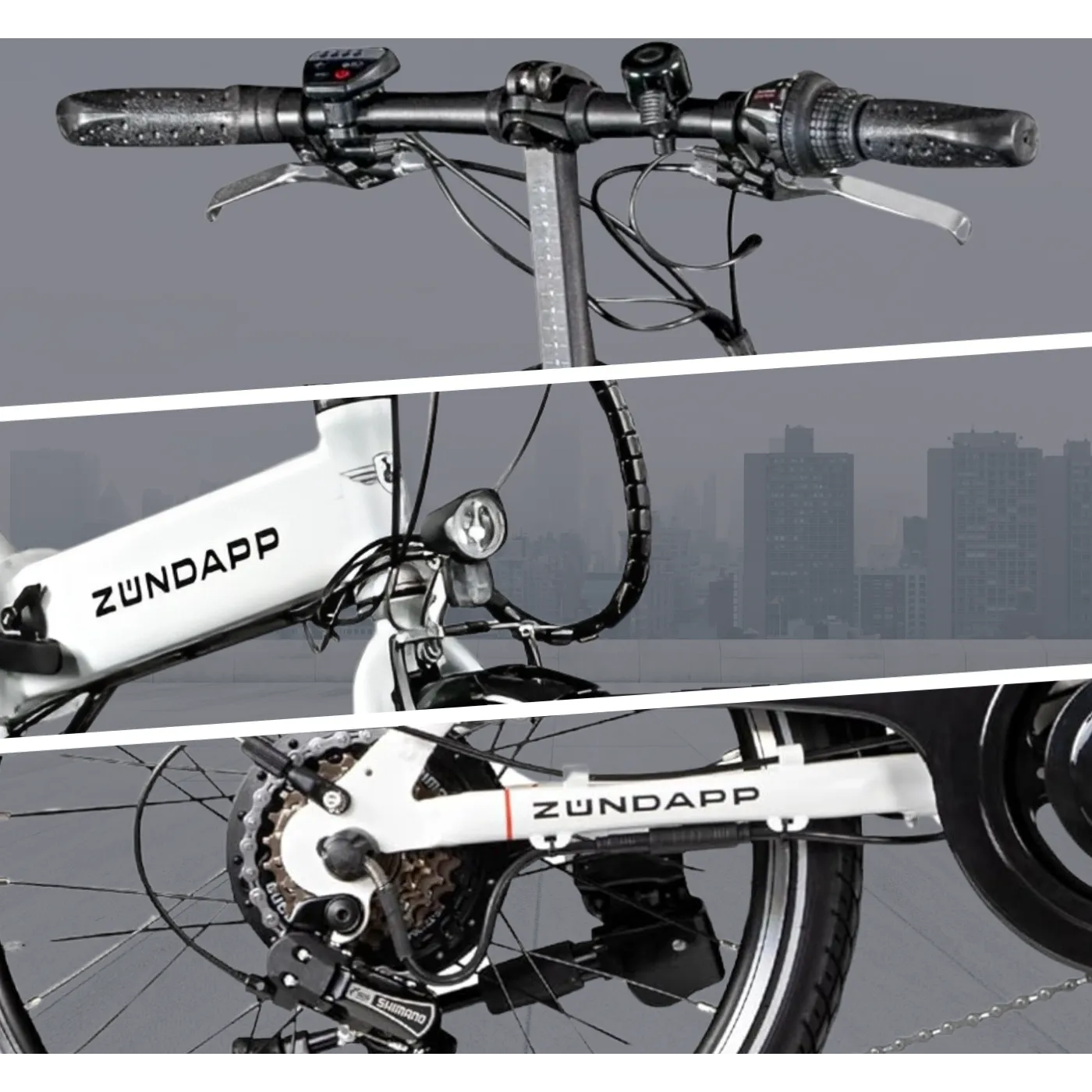 Składany rower elektryczny Zündapp Z101 łączy zalety tradycyjnego składanego roweru z napędem elektrycznym, dzięki czemu jest elastycznym, przyjaznym dla środowiska środkiem transportu w miastach. Nadaje się zarówno do dojazdów do pracy, jak i na zakupy, łączy sportowy charakter z praktycznością w codziennym użytkowaniu. Nawet na wakacjach Z101 jest niezawodnym towarzyszem, którego można zabrać wszędzie, aby zaoszczędzić miejsce. Dzięki mechanizmom składania w ramie, pedałach i mostku rower można szybko złożyć i zabrać do samochodu lub komunikacją miejską.