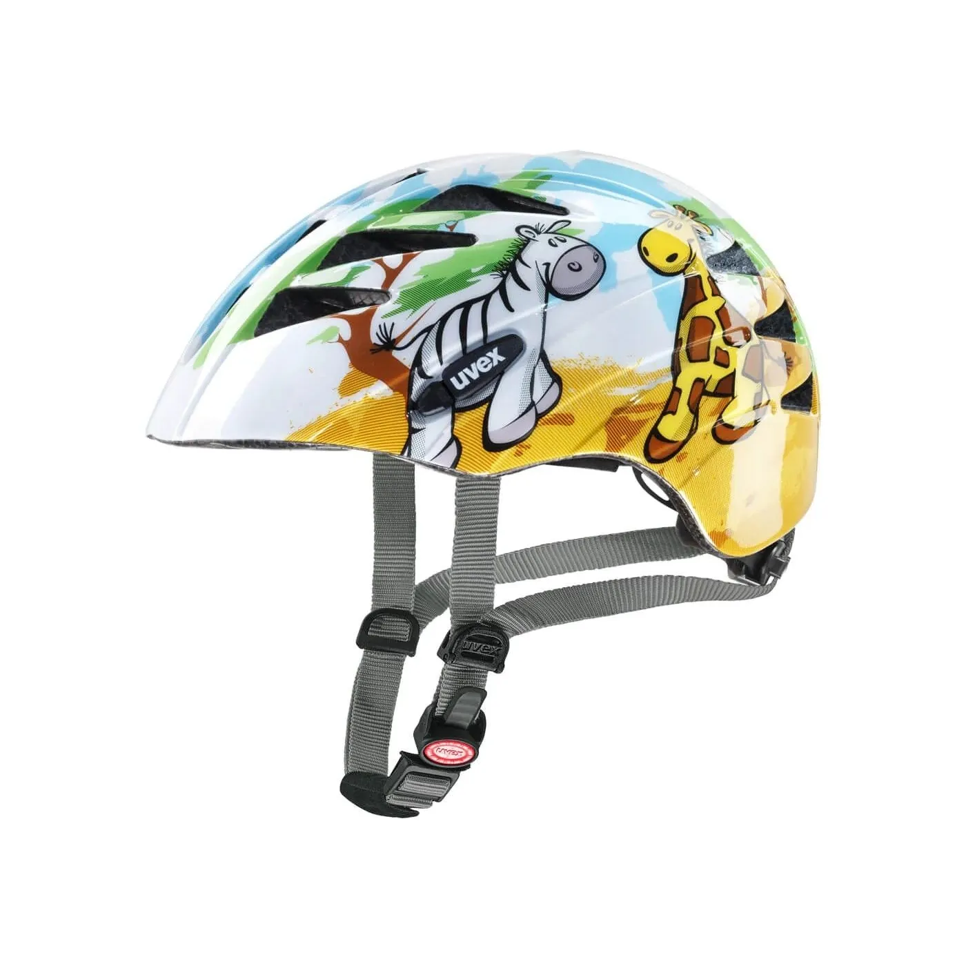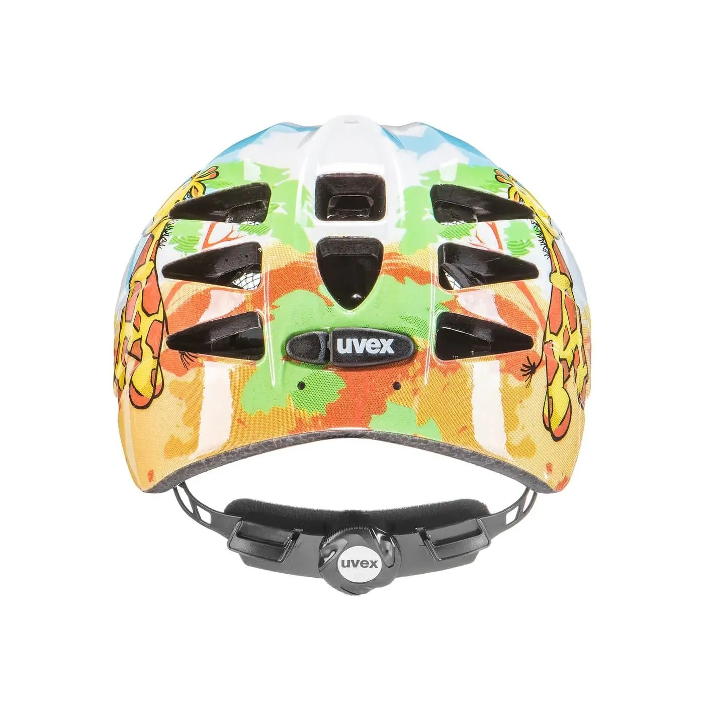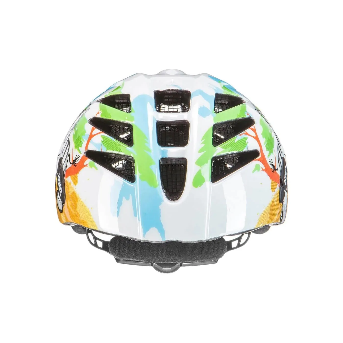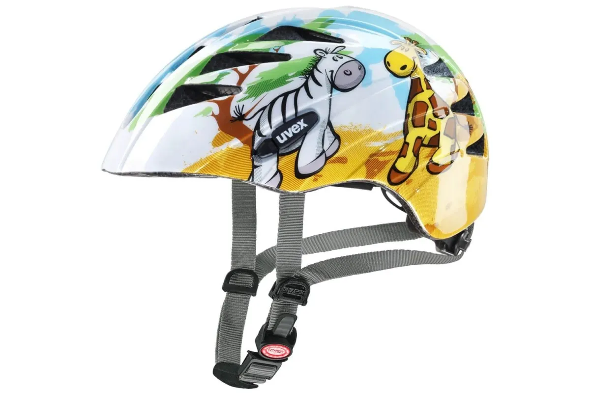 Kask Kid 1 Safari to jeden z najmniejszych kasków UVEX. Ten model to bardzo zgrabny i lekki produkt dla najmłodszych. Wykonany w technologii in-mold, dzięki czemu posiada bezpieczną i stabilną konstrukcję oraz bardzo dobrą wentylację. Ponadto, ta technologia sprawia, że kask jest lekki, przy zachowaniu maksymalnej odporności na uderzenia. Dodatkowo tył kasku został odpowiednio wyprofilowany, aby chronić kość potyliczną oraz wygodnie oprzeć głowę podczas jazdy w foteliku rowerowym.