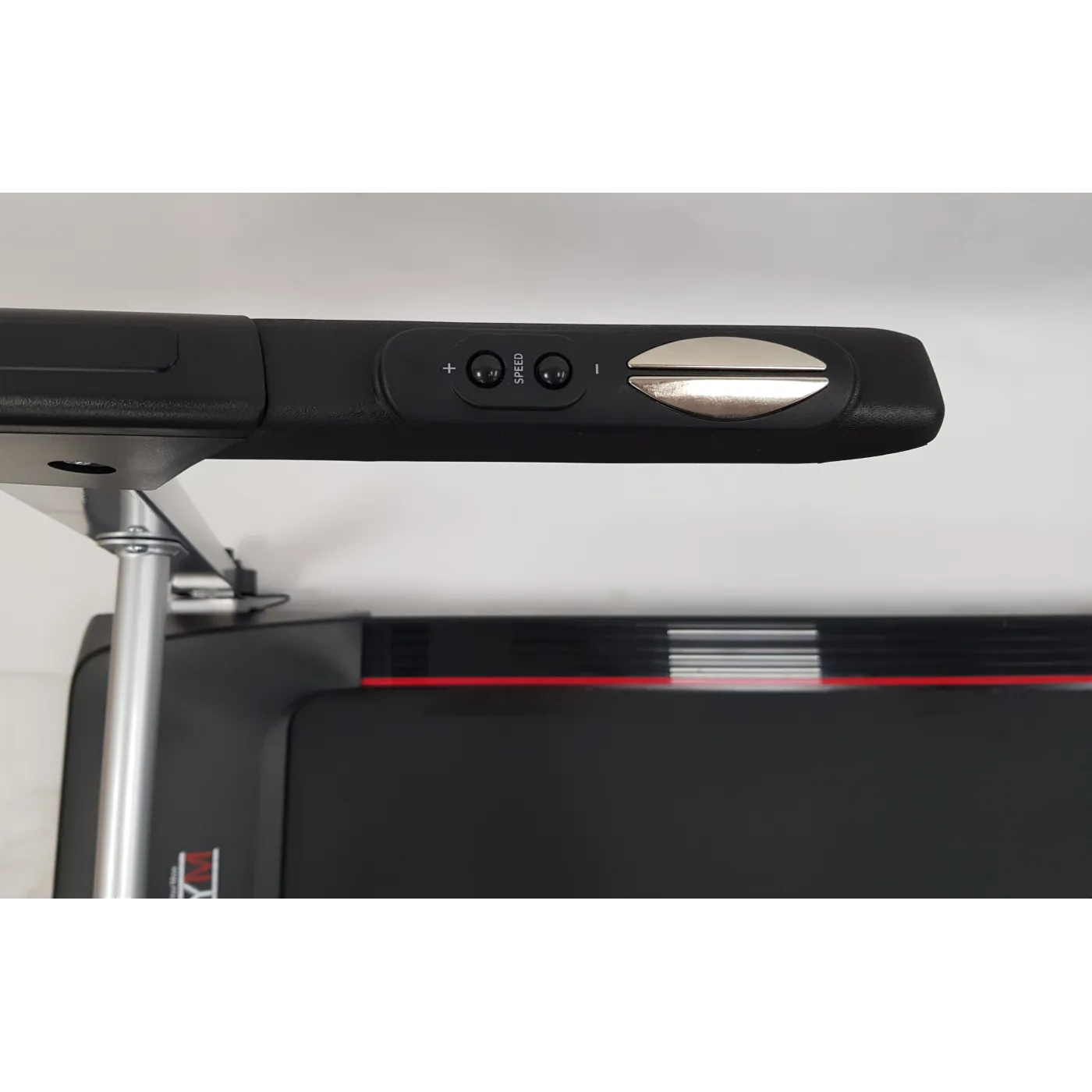 Bieżnia YM TAP 160 PRO dzięki swojej kompaktowości pozwala na wykonywanie niezbędnych ćwiczeń cardio, które pomogą Ci zachować formę w zaciszu własnego domu. Jest kompatybilna z dedykowanymi aplikacjami do szkoleń online i ma wbudowanych 12 planów treningowych. Posiada dużą powierzchnię toczną, a jej maksymalna prędkość wynosi 16 km/h. Ponadto wyposażona została w duży wyświetlacz LCD umożliwiający podgląd prędkości oraz wszystkich parametrów sterujących. Bieżnia po złożeniu osiąga grubość 26 cm, można ją ustawić w pozycji poziomej lub pionowej i posiada kółka ułatwiające transport.