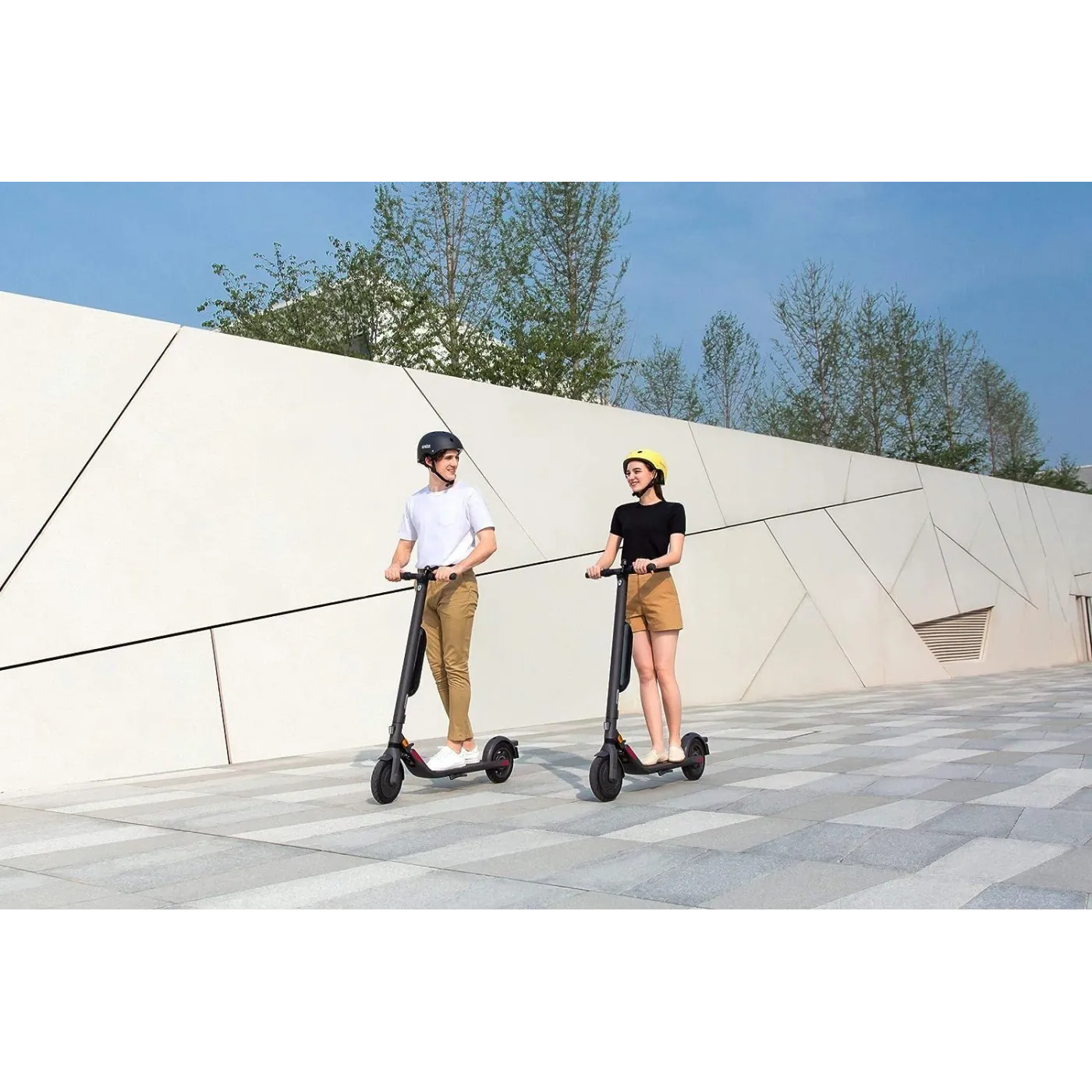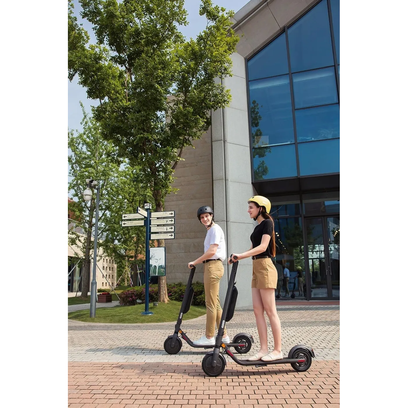 Ninebot by Segway KickScooter E45D to idealna hulajnoga elektryczna na dłuższe dystanse. Dzięki dodatkowej, wbudowanej baterii, zasięg maksymalny wynosi aż 45 km, a E45D nie wymaga częstego ładowania. Co więcej, 9-calowe opony są niepneumatyczne i wypełnione specjalną pianką, dzięki czemu nie musisz obawiać się o przebicie. Przemieszczanie się jest przyjemne i komfortowe. Prędkość maksymalna wynosząca 20 km/h zapewnia wrażenia z jazdy, a mocny silnik pozwala na podjechanie na maksymalne 20-procentowe nachylenie.