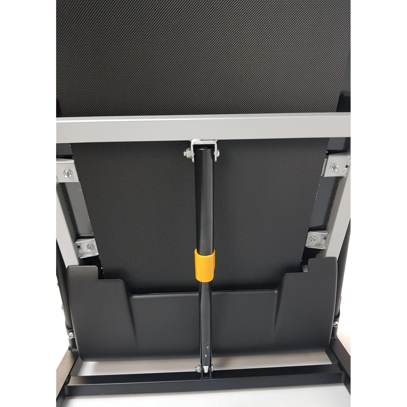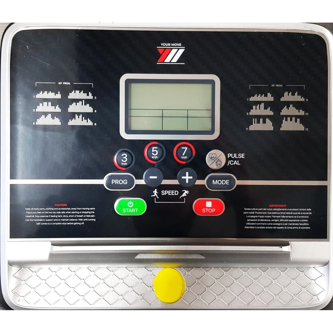 Bieżnia jest wyposażona w duży i nowoczesny cyfrowy wyświetlacz LCD (programy, tętno, czas treningu, przebyty dystans, etc.). Panel wyposażony jest w szybkie klawisze do wyboru prędkości, klawisze przyrostu i liniowej redukcji prędkości i programu treningowego. Monitor posiada klucz bezpieczeństwa do automatycznego wyłączania i podwójne uchwyty na napoje u boku. Ten model bieżni elektrycznej jest wyposażony w silnik, który może dostarczyć liniowo regulowaną moc, co powoduje stabilną i ciągłą pracę między 1 - 12 km/h. Uchwyty do rąk są wyposażone w czujnik bicia serca i wykonane z materiału, który sprawia, że uchwyt jest bardzo wygodny.