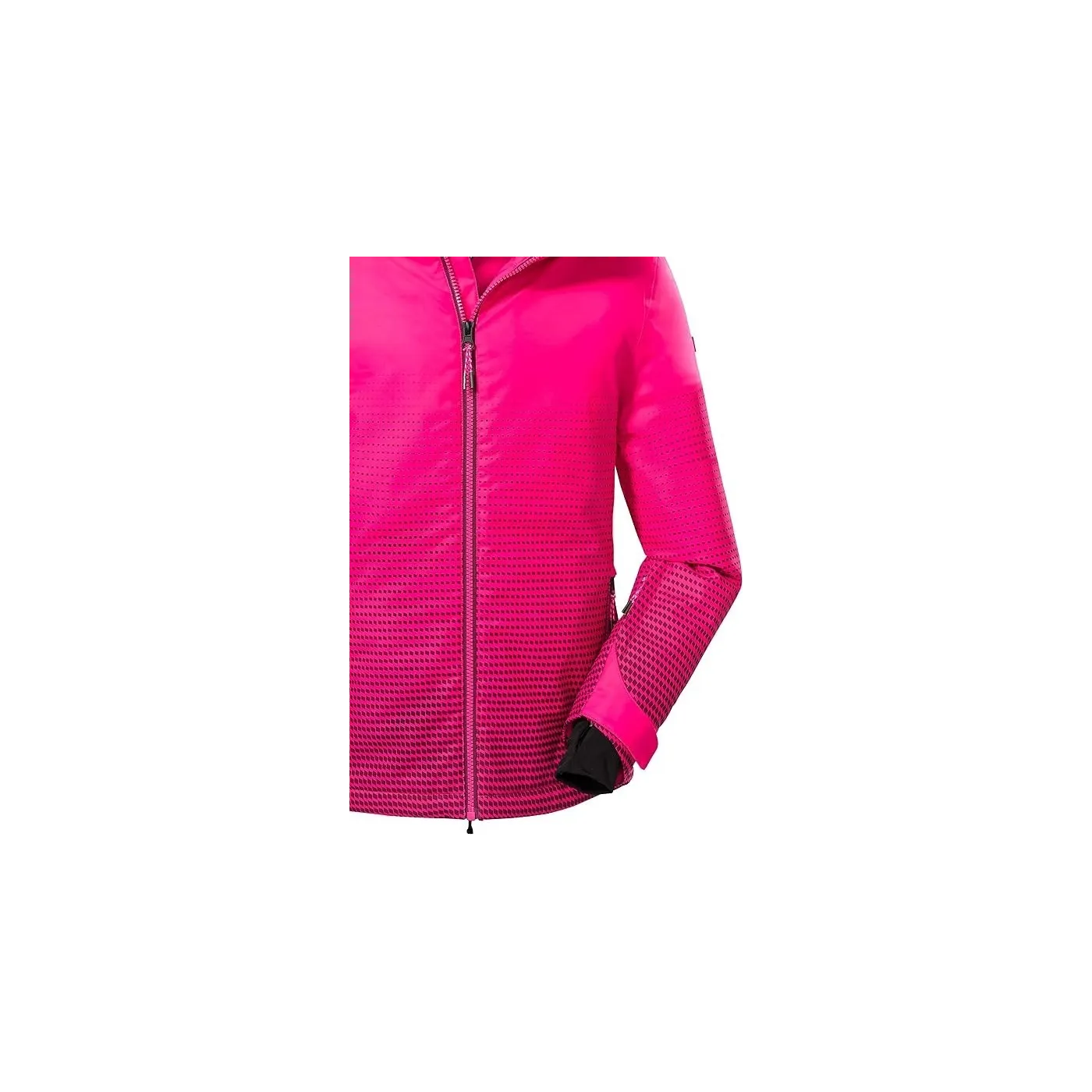 Kurtka funkcyjna z łapaczem śniegu firmy Killtec idealnie nadaje się na stok narciarski, ale również na wszystkie inne zimowe przygody. Nadruk Pixel i kolorowe zamki błyskawiczne podkreślają sportowy wygląd. Kurtka ma klejone szwy i jest w 100% wodoodporna i wiatroszczelna. Jednocześnie przepuszcza powietrze z przepuszczalnością pary wodnej 3000 g/m²/24 h. Kurtka i kaptur są podszyte ocieplającym polarem. Szerokość kaptura z daszkiem można indywidualnie regulować. Mankiety są wyposażone w otwory na kciuki. Kurtka narciarska wyróżnia się również pracochłonnym wykończeniem wewnętrznym, np. wstawką z siatki regulującej temperaturę i antypoślizgowym śniegołapem. Liczne kieszenie zapewniają wystarczająco dużo miejsca do przechowywania wszystkich ważnych rzeczy, takich jak klucze, czy karnet narciarski.