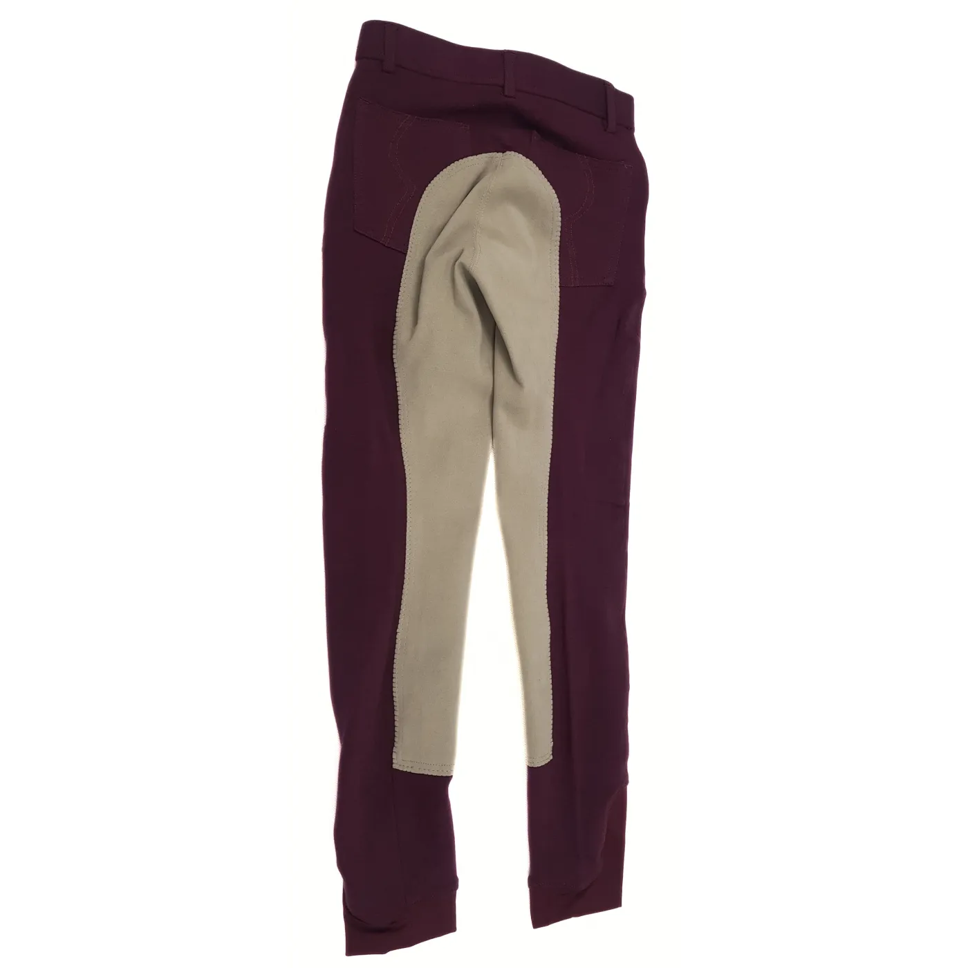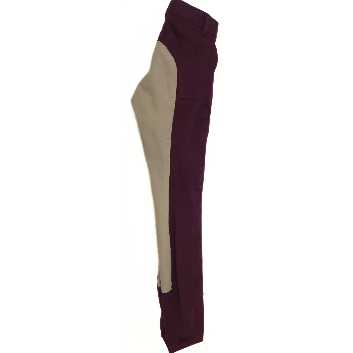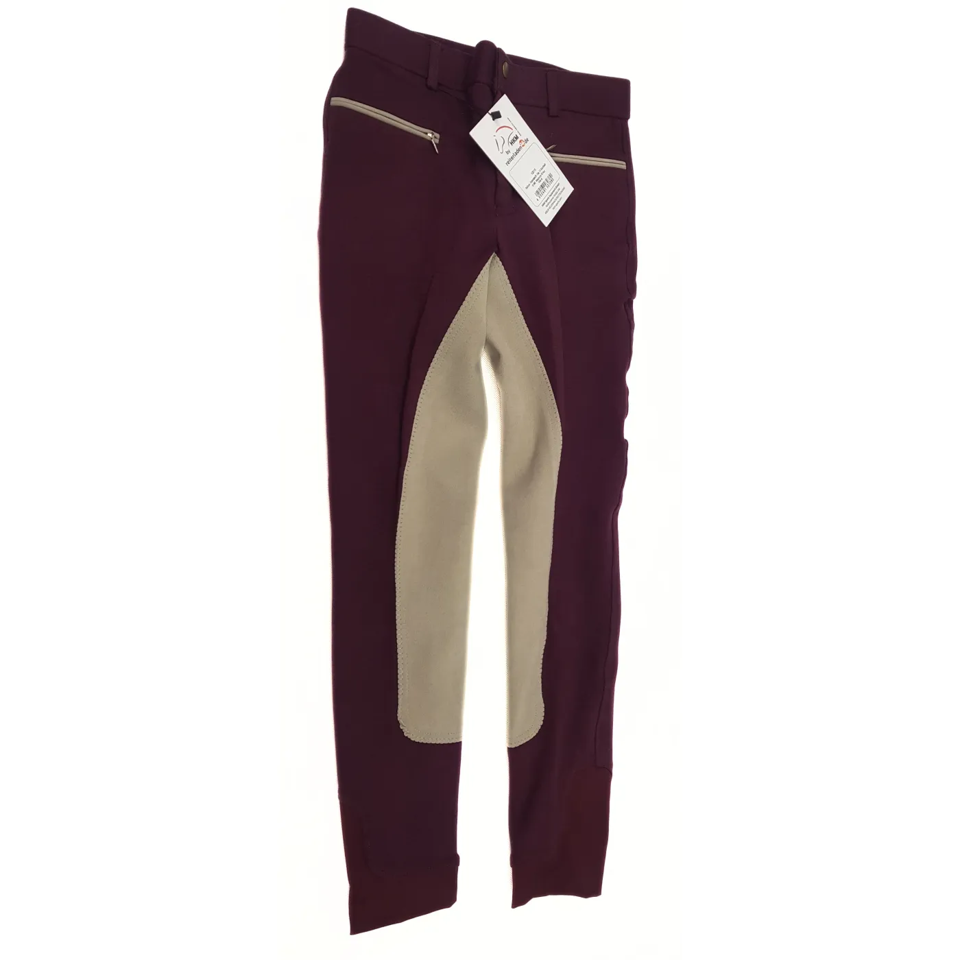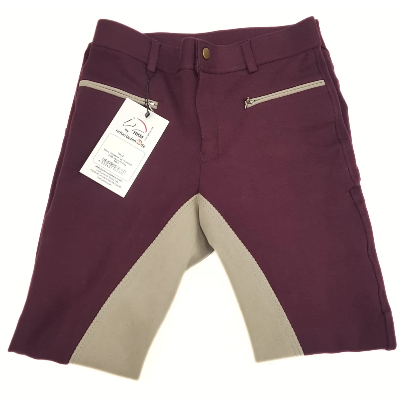 Bryczesy HKM by Reiterladen24, idealne dla aktywnych osób, cechujące się wysoką oddychalnością i szybkim wchłanianiem wilgoci. Specjalna tkanina jest przyjazna dla skóry, zapewniając komfort podczas użytkowania. Bryczesy posiadają obszycie 3/4 z imitacji skóry, dodając im eleganckiego charakteru.