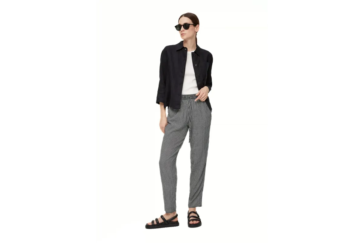 Dzięki wzorzystemu wzorowi na całej powierzchni, kieszeniom, średniemu stanowi oraz zwężanym nogawkom, te spodnie mają kobiecy wygląd i doskonale sprawdzą się na co dzień. Ich regularne dopasowanie oraz elastyczna tkanina zapewnią wygodę i komfort noszenia.