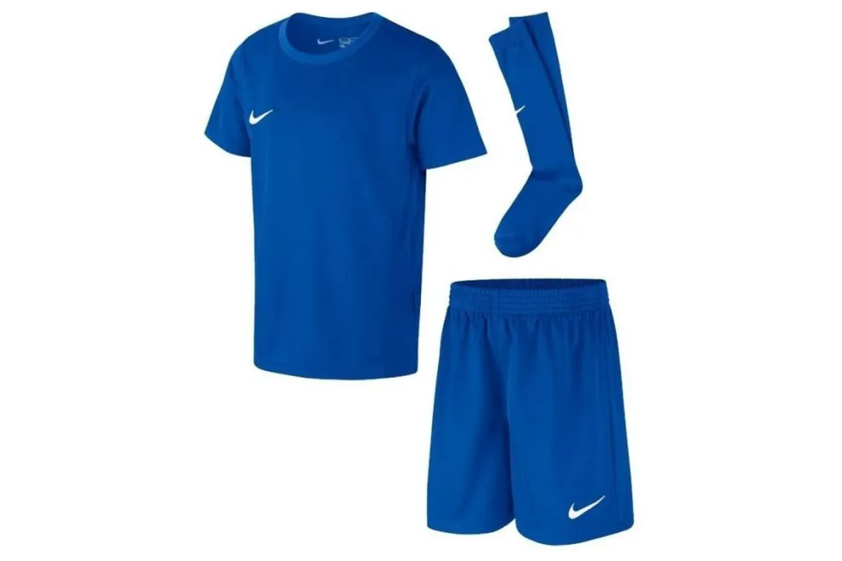 Komplet dziecięcy Nike Park 20 to idealna opcja dla przyszłych talentów piłkarskich. Składający się z koszulki, spodenek i getr, zapewniający wygodę podczas treningów dzięki materiałom odprowadzającym wilgoć. Koszulka z krótkim rękawem i spodenki z elastycznym pasem gwarantują swobodę ruchów, a getry z górnym ściągaczem zapewniają komfort noszenia. Dzięki technologii Dri-FIT, komplet idealnie sprawdzi się nawet podczas wymagających treningów.