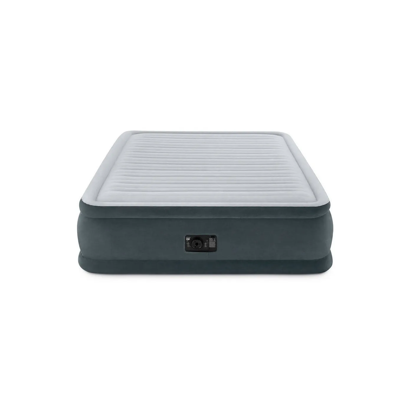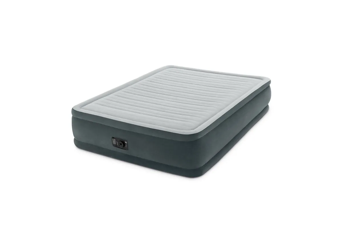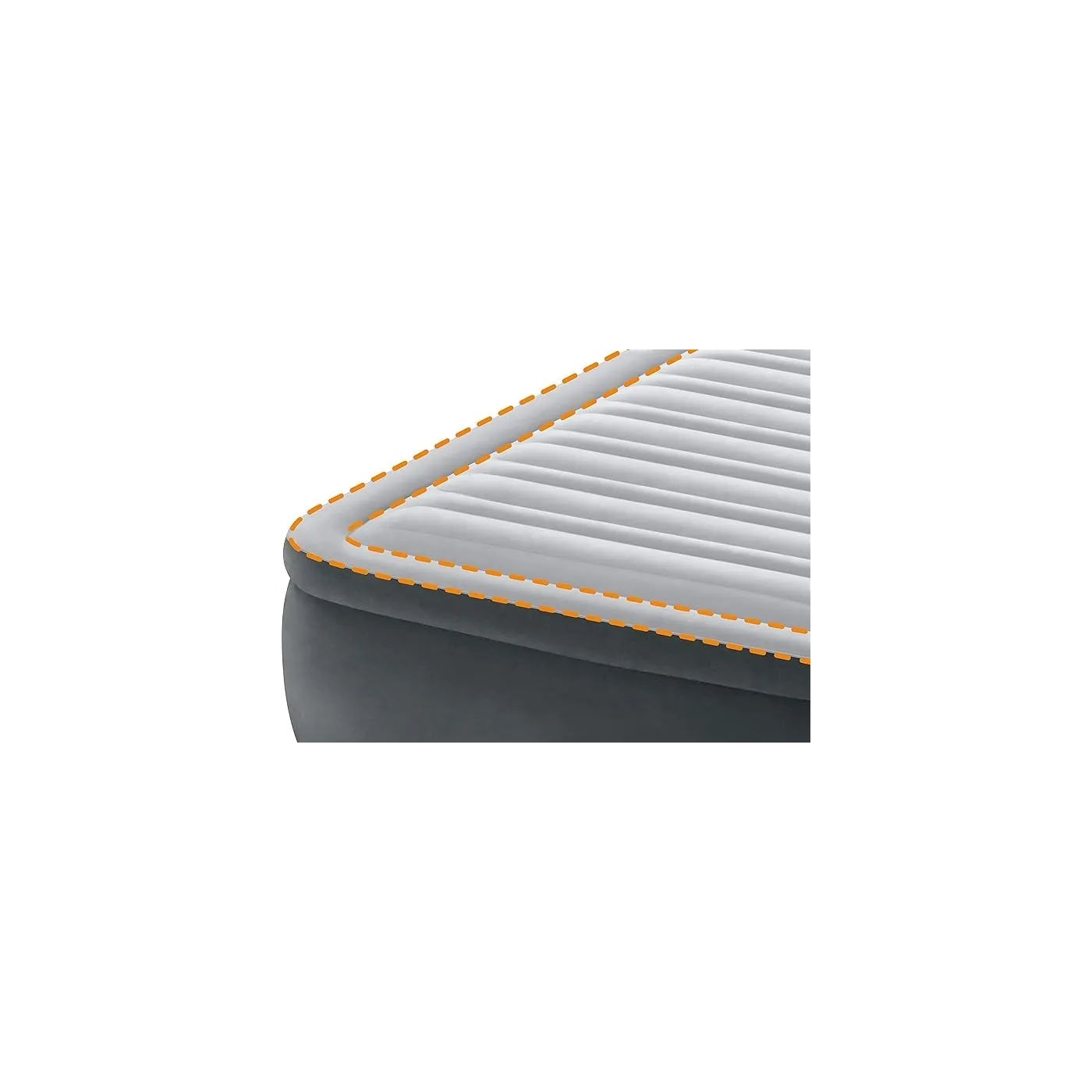 Dzięki specjalnym wgłębieniom po bokach materaca, prześcieradło nie będzie się zsuwać czy spadać. Dla pełnego komfortu powierzchnia do spania została pokryta mięciutkim welurem. Brzegi materaca wykończono nadmuchiwaną ramą. Materac o wymiarach 152 x 203 x 46 cm idealnie nadaję się dla dwóch osób, a dzięki wbudowanej pompce elektrycznej, beż żadnego wysiłku napompujesz materac w 4 minuty. Materac doskonale dopasowuje się do kształtu ciała zapewniając doskonałe wsparcie dla Twojego kręgosłupa oraz wspomagając regenerację organizmu podczas snu.