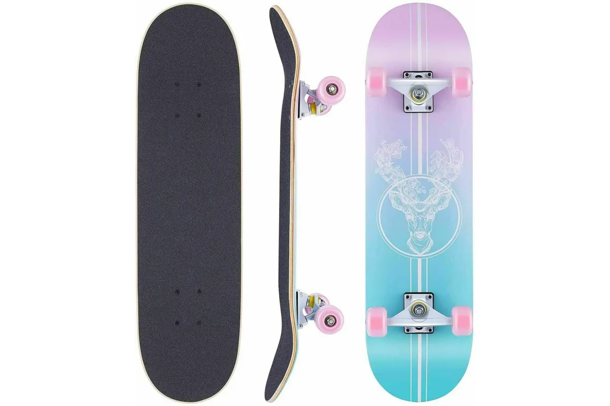 Deskorolka WeSkate to idealny sprzęt dla wszystkich miłośników jazdy na deskorolce. Posiada solidną konstrukcję wykonaną z wysokiej jakości materiałów, co gwarantuje wytrzymałość i odporność na uszkodzenia. Kolorystyka w odcieniach niebieskiego i różowego nadaje deskorolce wyjątkowego charakteru i stylu.