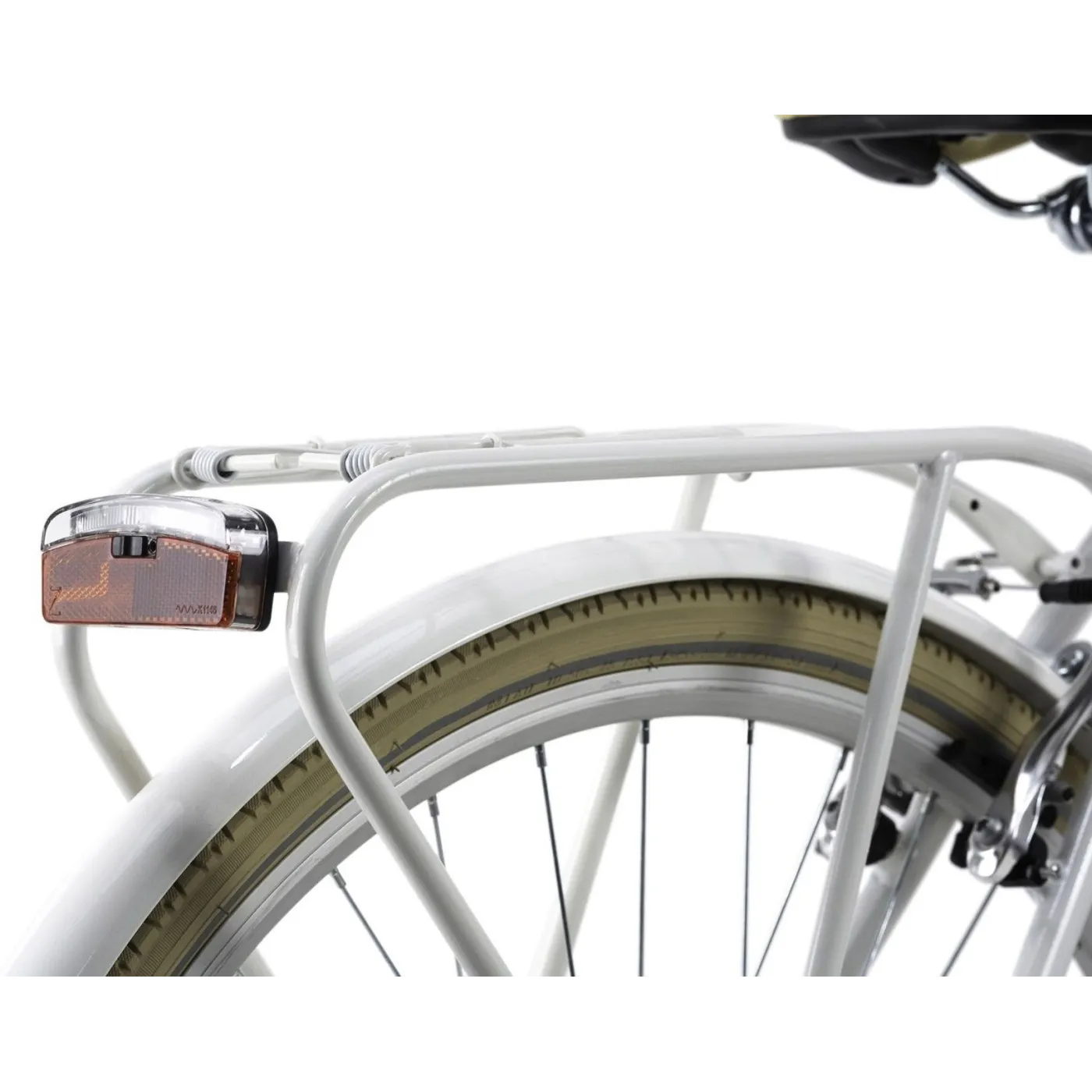 To nowoczesny rower ze stalową ramą i wieloma funkcjonalnymi komponentami. Przerzutka 6-biegowa firmy SHIMANO zapewnia relaksującą jazdę po mieście i dostosowuje się do Twoich indywidualnych potrzeb, a oświetlenie zasilane dynamo zapewnia bezpieczeństwo podczas jazdy po zmroku. Ponadto, rower ma wiele elementów bezpieczeństwa, takich jak błotniki, osłona łańcucha, zestaw oświetlenia zasilanego dynamo i skuteczne hamulce V-brake.
