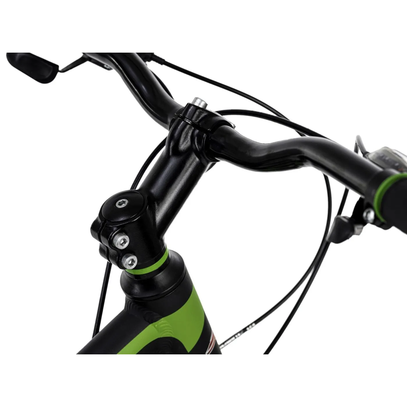 Rower górski XCEED hardtail firmy KS Cycling zachwyca nie tylko swoim niesamowitym designem, ale także swoim wyposażeniem, który naprawdę przyciąga wzrok. Rower wyposażony jest w 24-biegową przerzutkę z komponentami SHIMANO. Mechaniczne hamulce tarczowe z przodu i z tyłu zapewniają niezawodne hamowanie. Ergonomiczne siodło idealnie wpasowuje się w ogólny obraz. Oprócz ramy, obręcze, korby, sztyca i mostek są również wykonane z aluminium, dzięki czemu rower jest lekkim wyścigowym MTB.