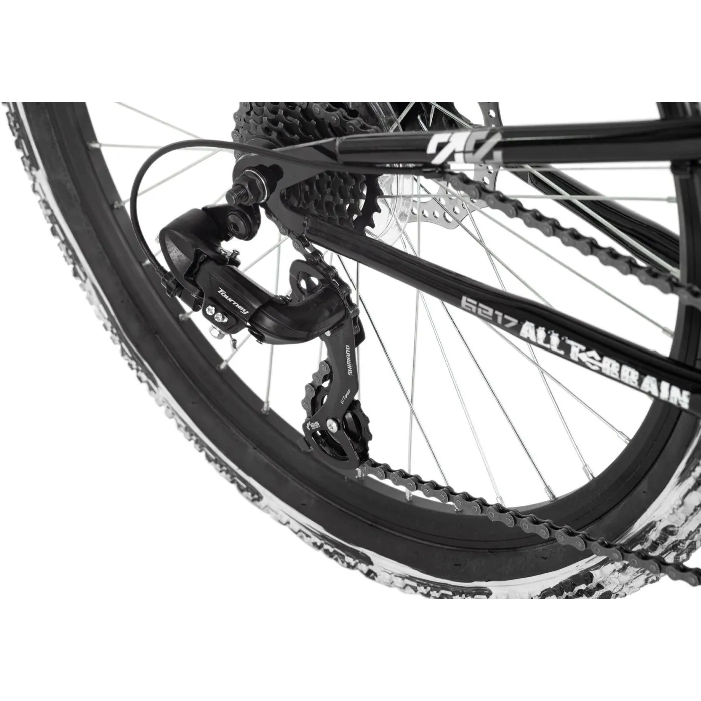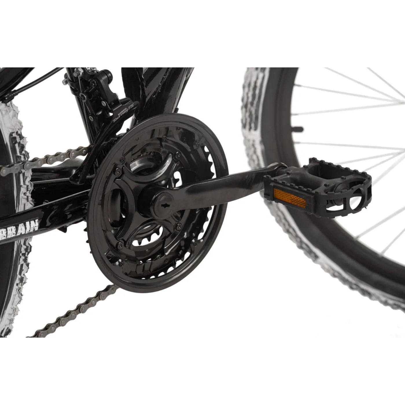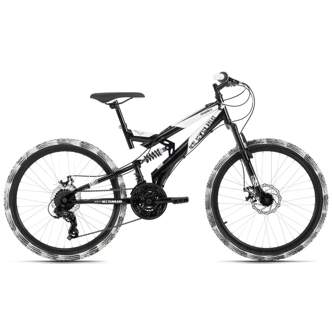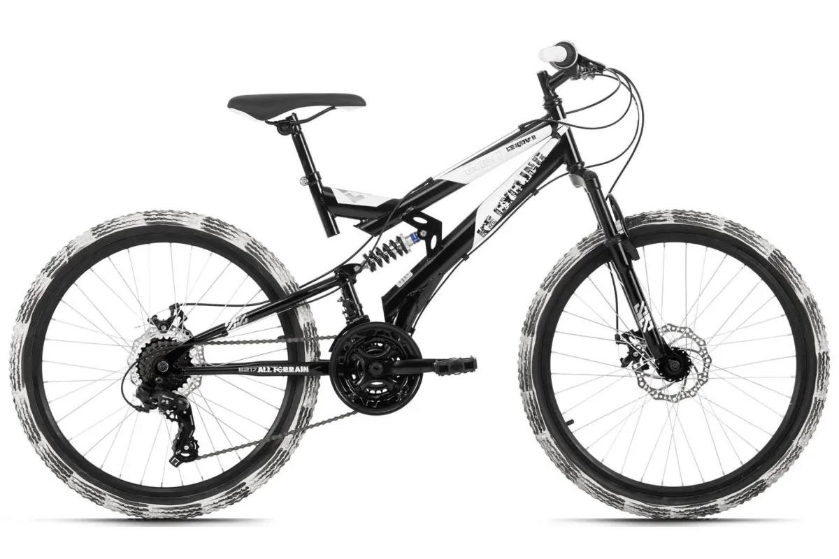 Idealny w drodze do szkoły lub na weekendowy wypad do lasu. 24-calowy rower górski CRUSHER firmy KS Cycling jest idealny do rozpoczęcia przygody z kolarstwem górskim! Czarna rama z kolorowymi detalami jest stylowa i przyciąga uwagę każdego. Ten model z pełnym zawieszeniem jest wyposażony w hamulce tarczowe oraz V-brake, a 21-biegowa przerzutka z obrotowymi manetkami dopełnia design.