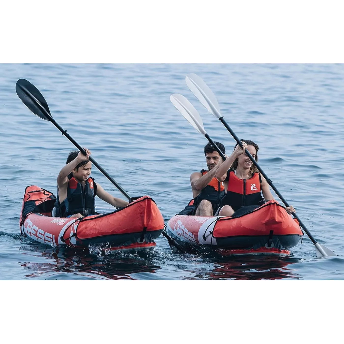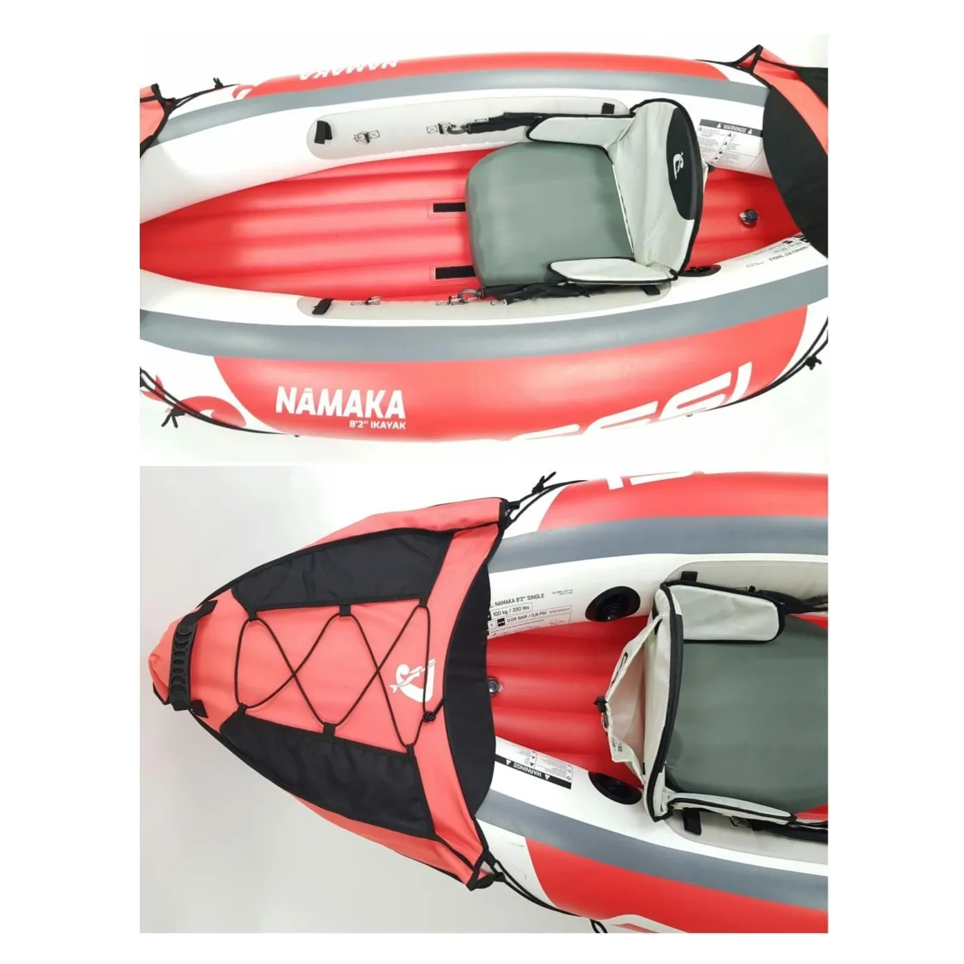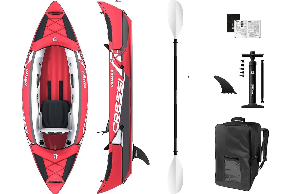 Cressi NAMAKA to nadmuchiwany kajak z potrójną komorą powietrzną i regulowanym siedzeniem. Ten model posiada także nylonową ochronę dziobu i rufy oraz wzmocnione dno z warstwą chroniącą przed ścieraniem. Podwyższone siedzenie zapewnia większy komfort wiosłowania. Zestaw jest wyposażony we wszystkie akcesoria potrzebne do rozpoczęcia przygody z wodą.