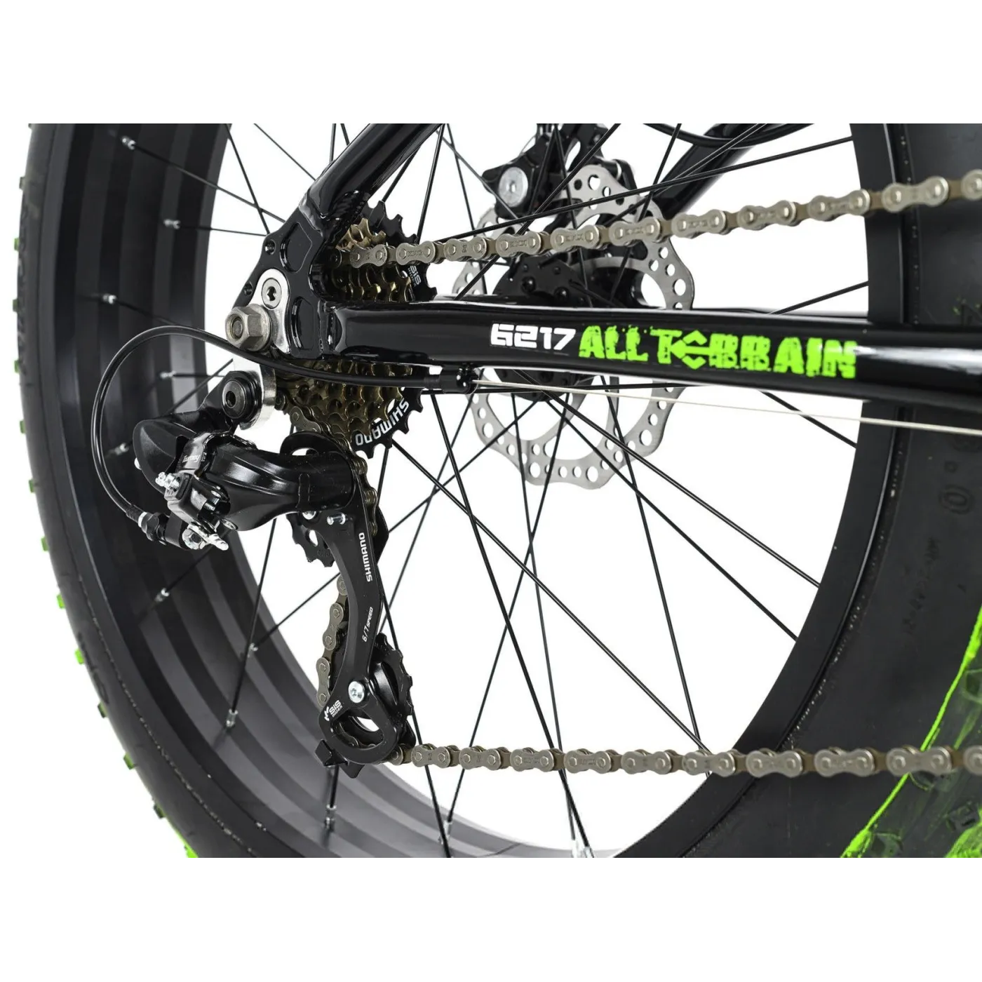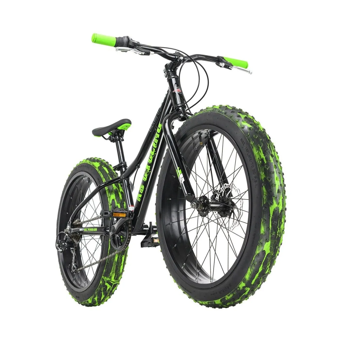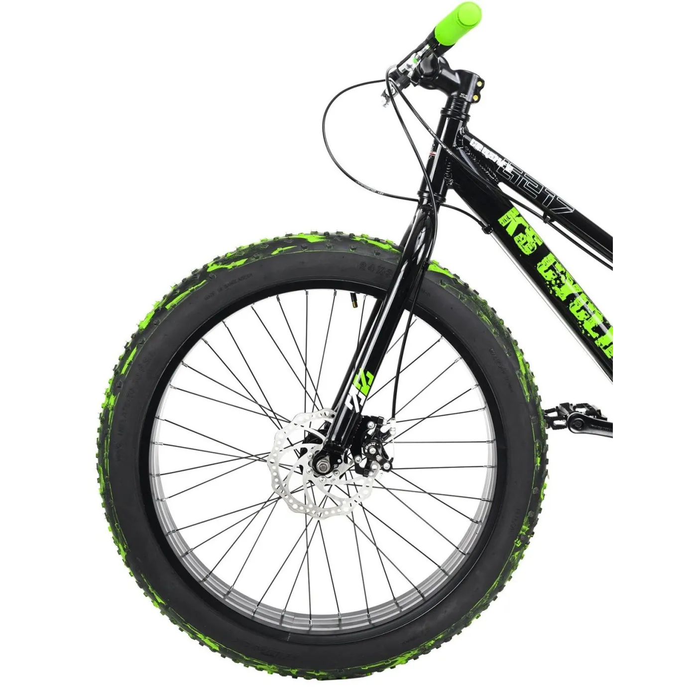 24-calowy aluminiowy fatbike CRUSHER 6217 firmy KS Cycling po prostu wygląda niesamowicie od siodełka po duże, grube felgi. Wszędzie tam, gdzie nie można już jeździć na zwykłym rowerze górskim, fatbike czuje się jak w domu. Jest stworzony do ekstremalnych warunków i z łatwością radzi sobie z piaskiem, śniegiem, błotem i innymi trudnymi nawierzchniami! Trakcja jest niesamowita i nie stanowi już problemu dzięki grubym oponom, a mimo to opory toczenia na normalnym terenie są zaskakująco niskie. Amortyzowany widelec jest tak samo dobry, jak zbędny, ponieważ obszerne opony zapewniają duży komfort tłumienia.