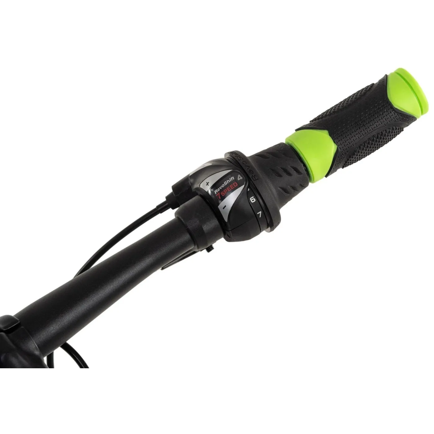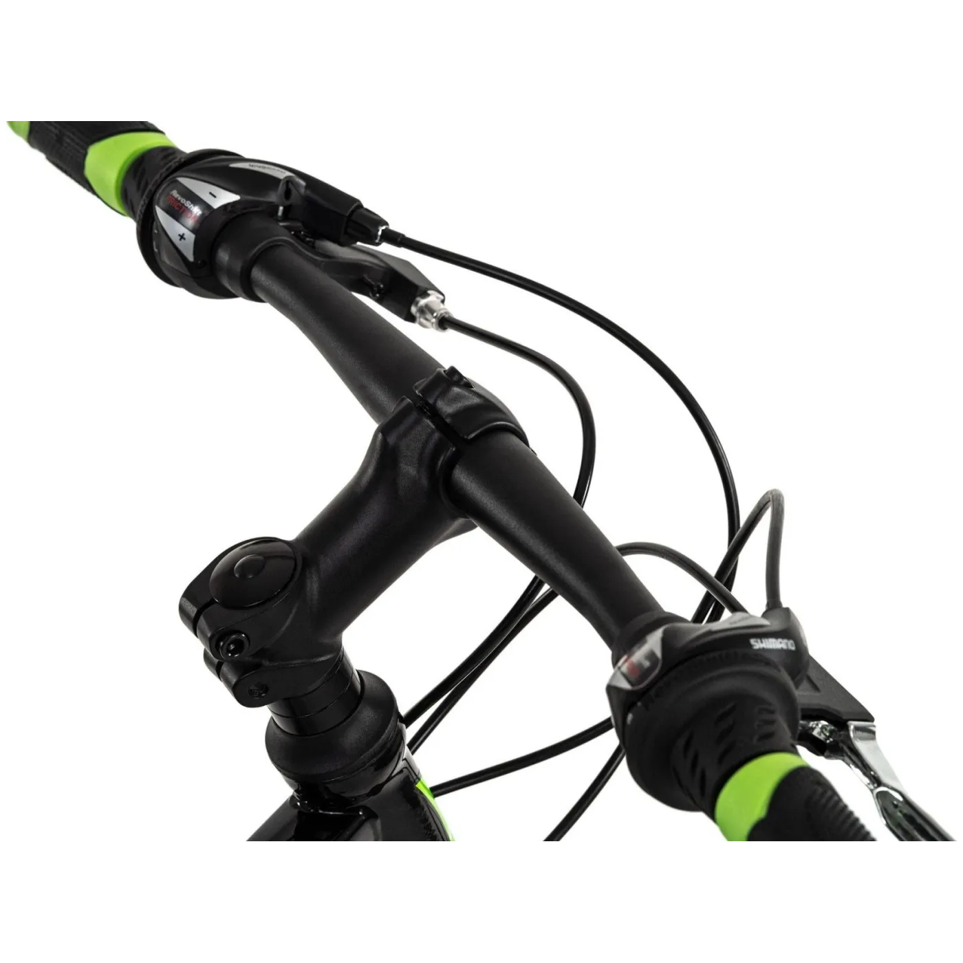 👉 Rower wyposażony jest w 21-biegową przerzutkę Shimano Tourney, która umożliwia szybkie i płynne zmiany biegów, dostosowując się do różnorodnego terenu. Manetka obrotowa Shimano RevoShift pozwala na łatwe i precyzyjne sterowanie przerzutką podczas jazdy.