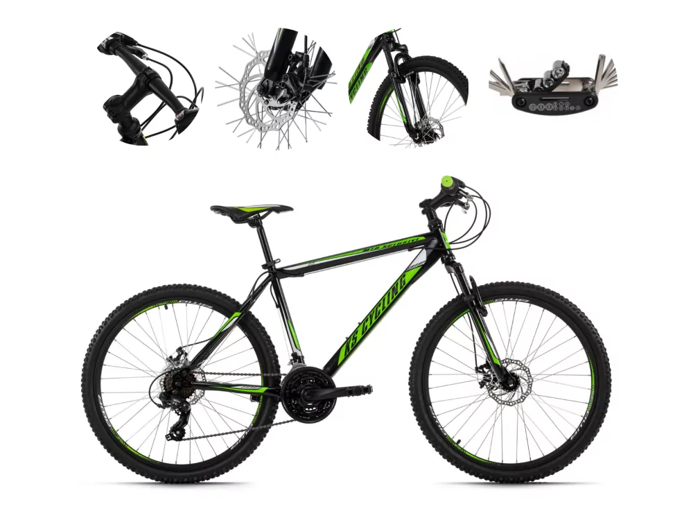✔️ Duże opony o wymiarach 26" x 2,10" zapewniają doskonałą przyczepność do podłoża i komfortową jazdę zarówno po asfalcie, jak i po nierównym terenie. Dodatkowo rower wyposażony jest w dzwonek, który pozwala ostrzec innych użytkowników drogi o naszym zbliżaniu się.